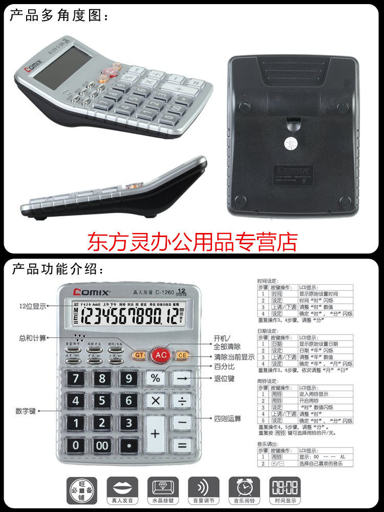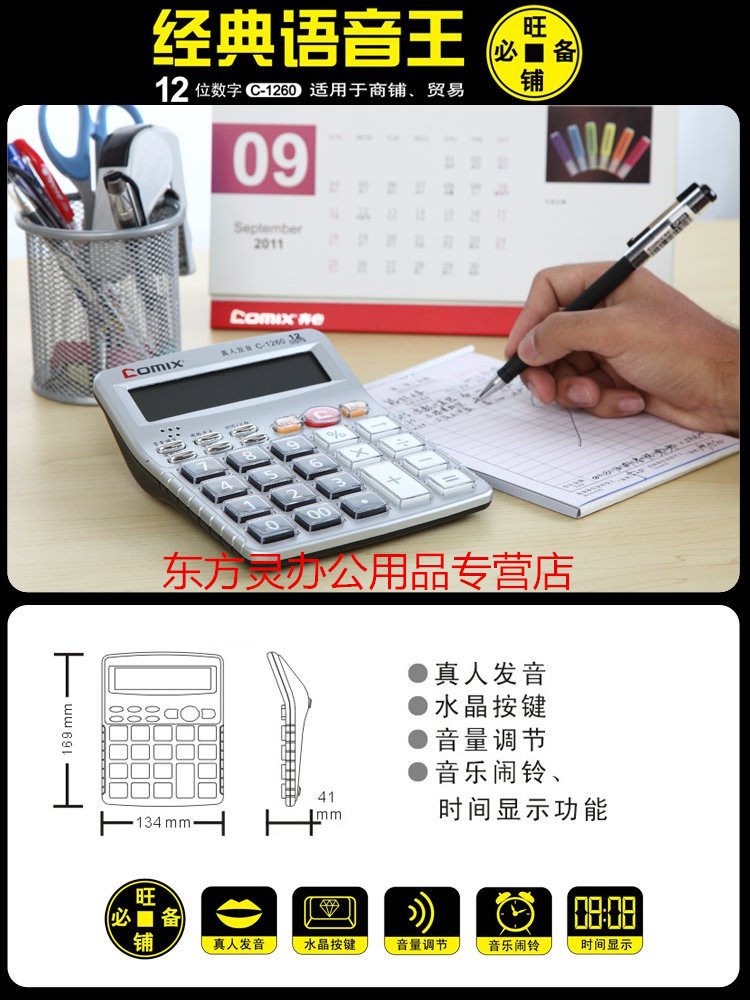 Comix Qi Xin C-1260 Голосовой калькулятор большой экран прозрачная кнопка защиты Финансовый офис