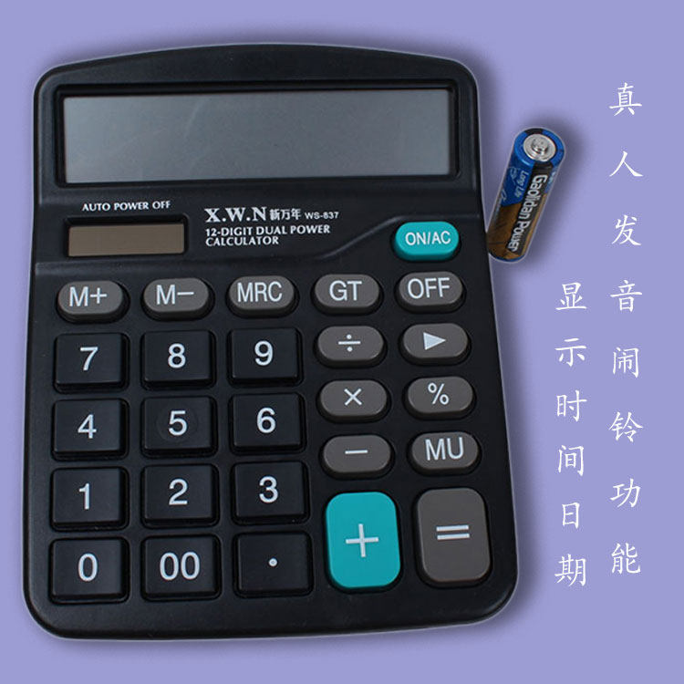 Продвижение New Wannian 837 Calculator Solar 12 -бит -экрана -таблица -тип калькулятор модели офиса с голосовой функцией