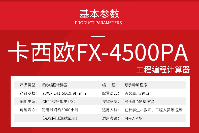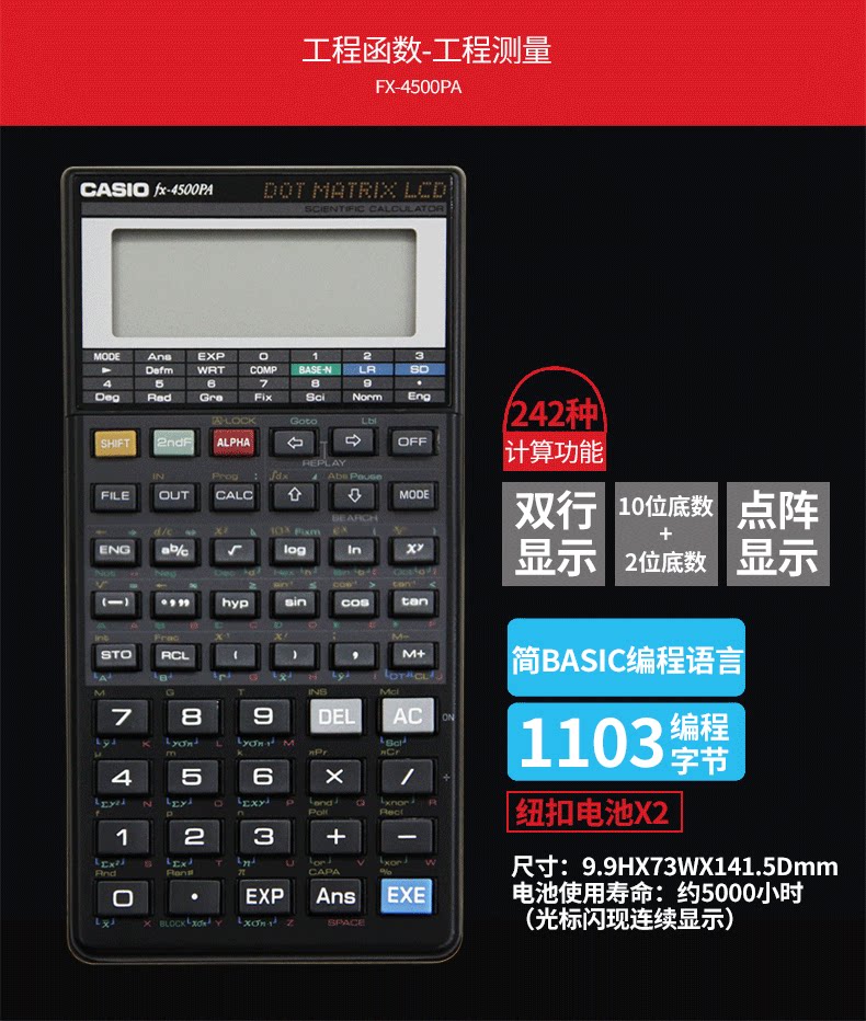 Casio Casio FX-4500PA научные измерения Программируемая программируемая функция Инженерный тестовый тестовый калькулятор