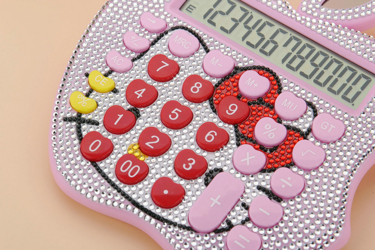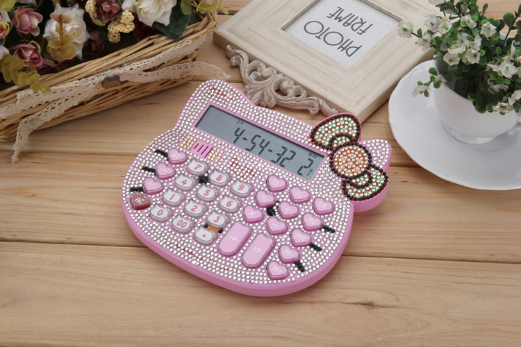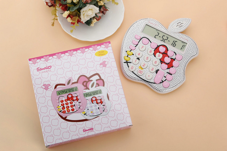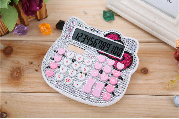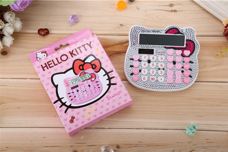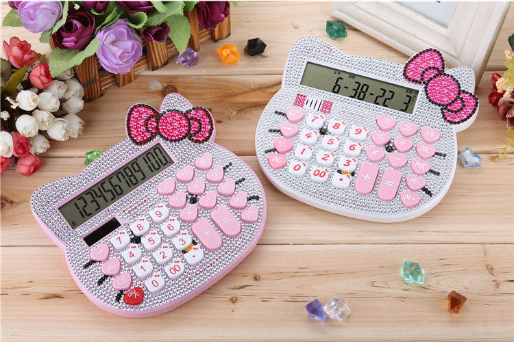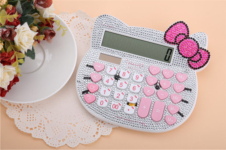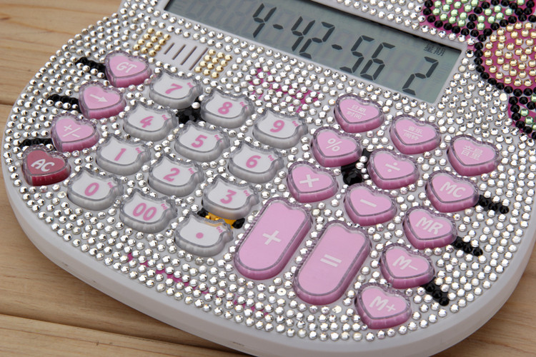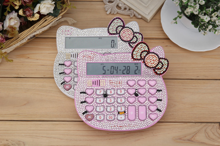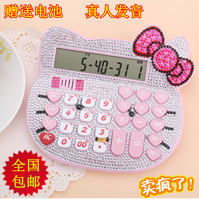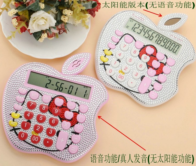 Бесплатная доставка Hellokitty милый бриллиант -мозаичный калькулятор мультфильм кошачья головка солнечная яблочная голосовая компьютер