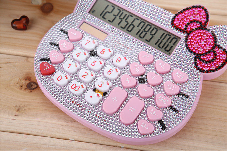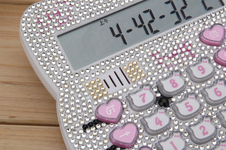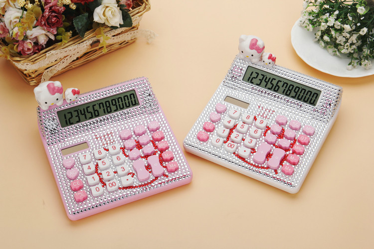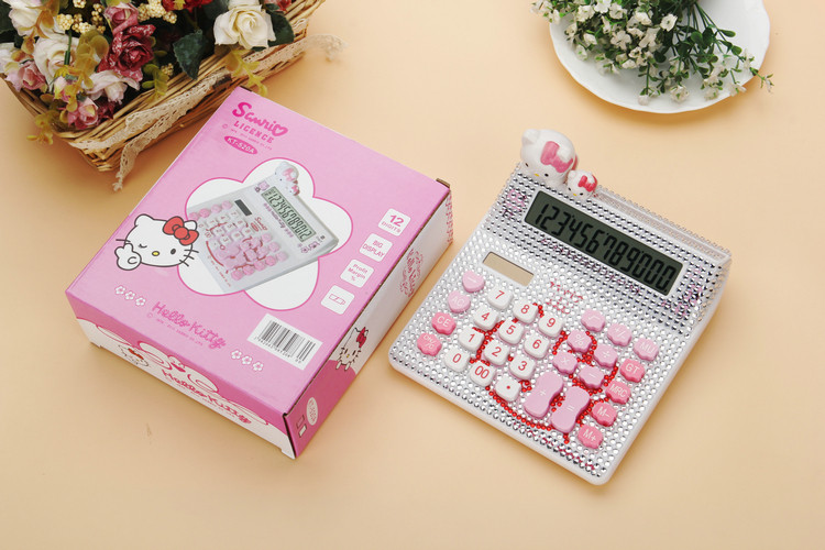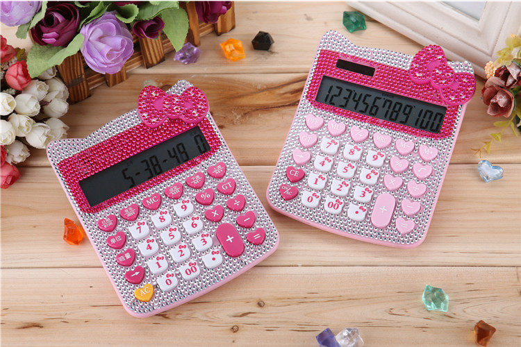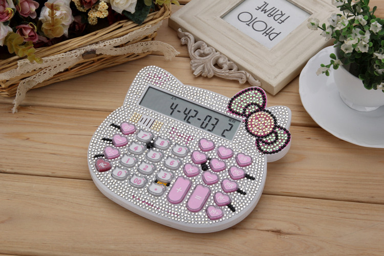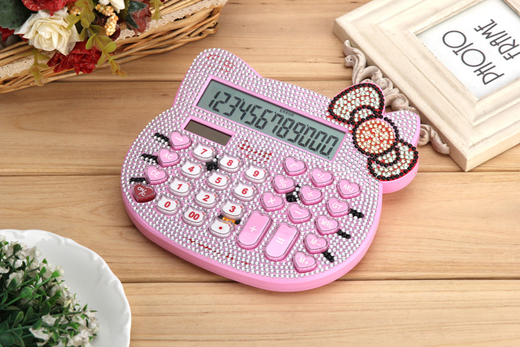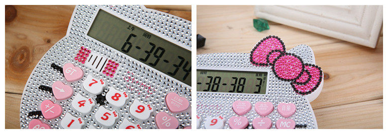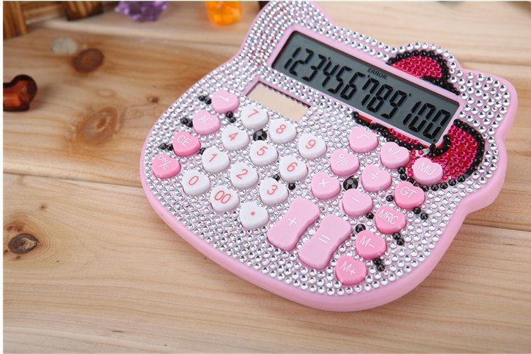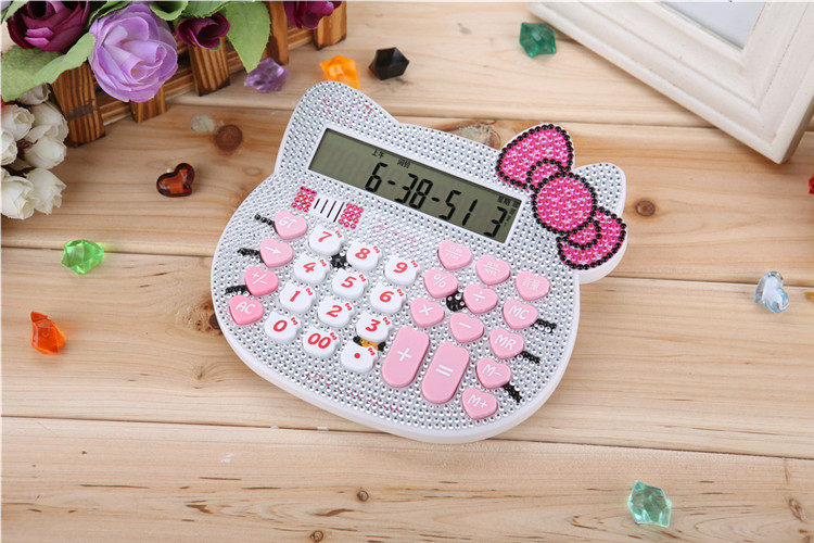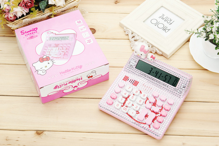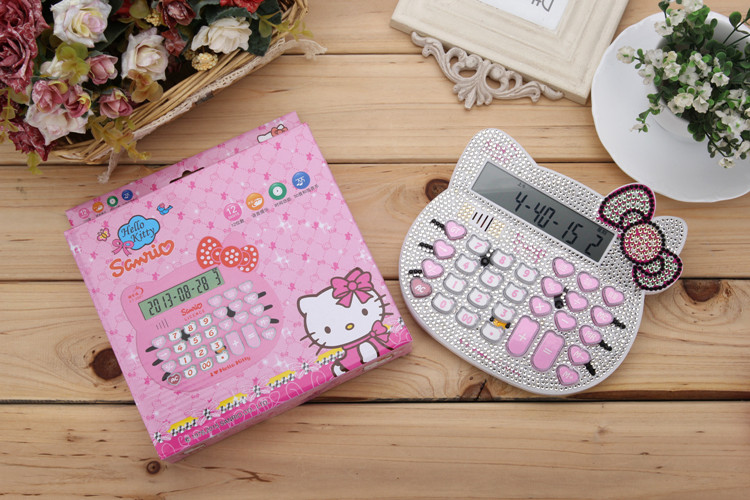 Бесплатная доставка Hellokitty милый бриллиант -мозаичный калькулятор мультфильм кошачья головка солнечная яблочная голосовая компьютер