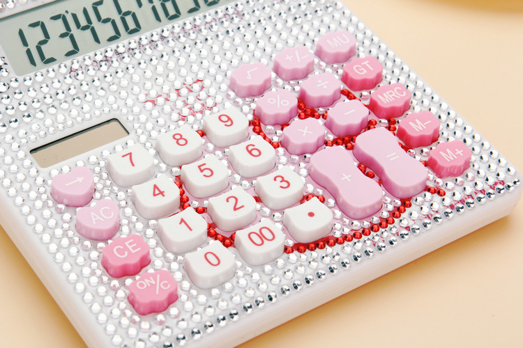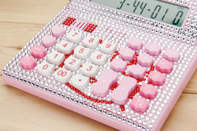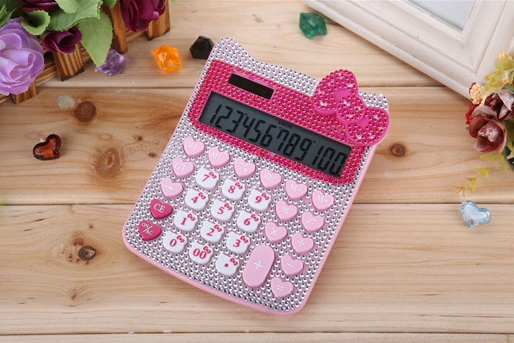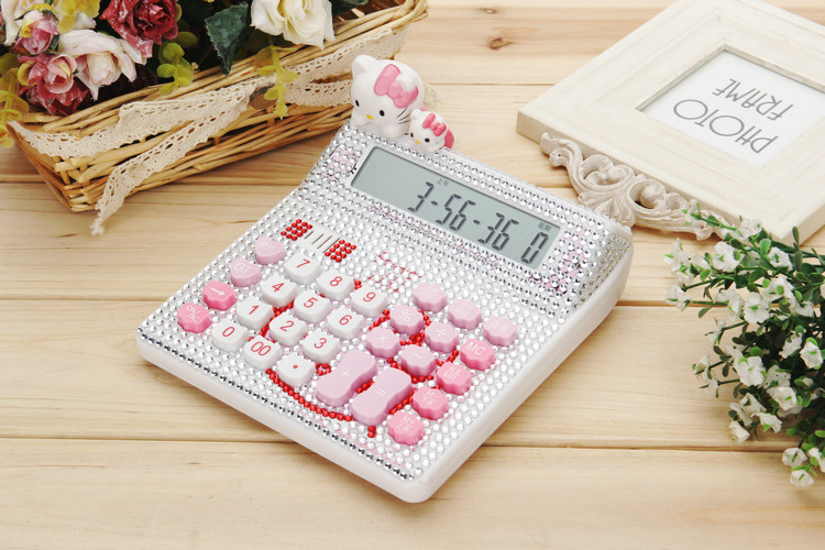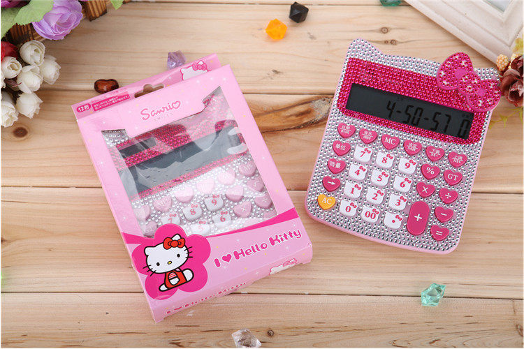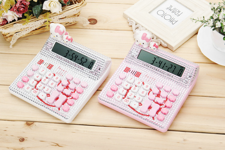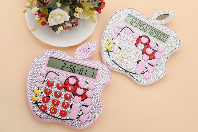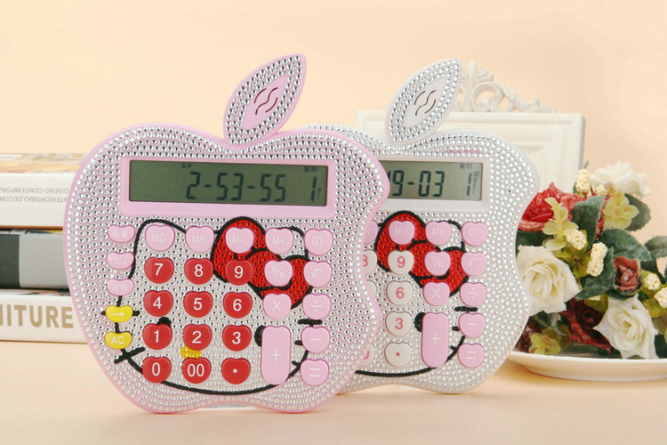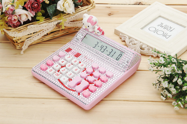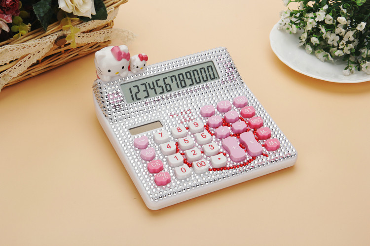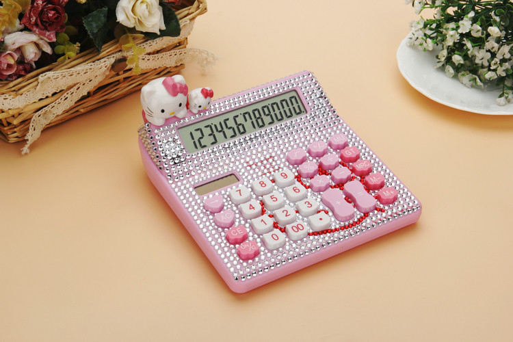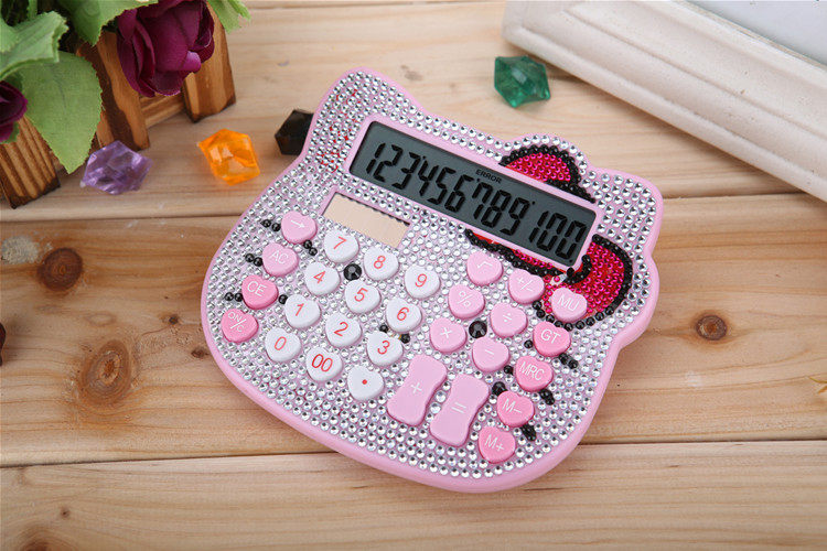 Бесплатная доставка Hellokitty милый бриллиант -мозаичный калькулятор мультфильм кошачья головка солнечная яблочная голосовая компьютер