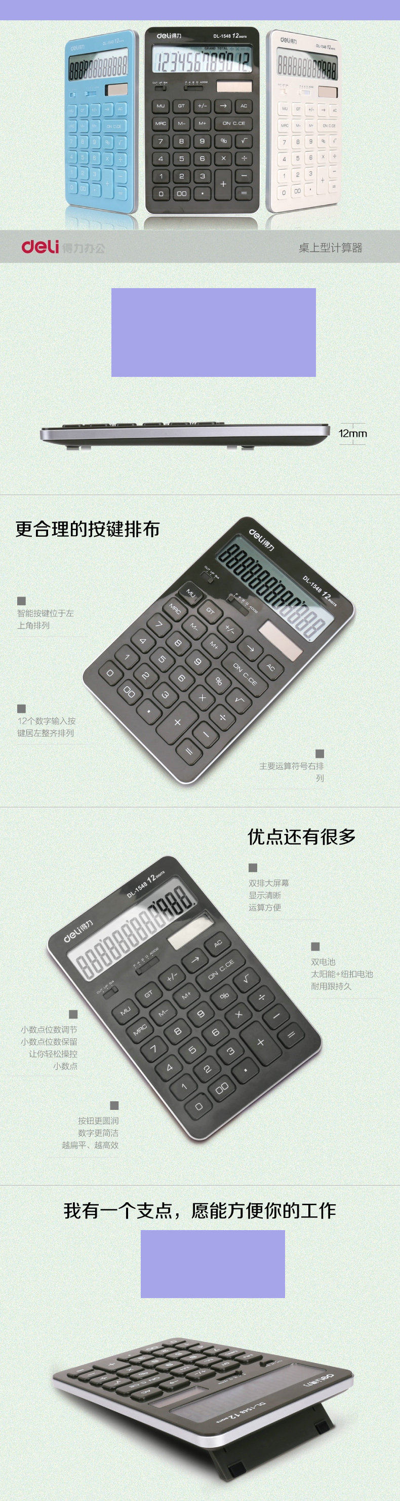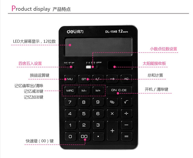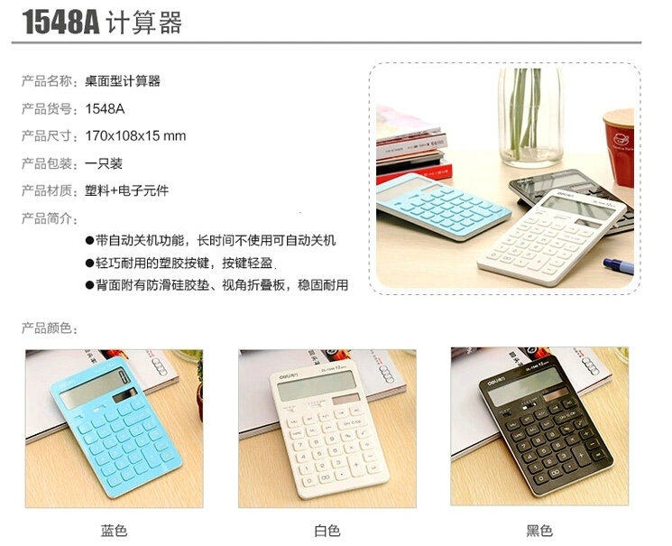 Калькулятор деликатеса милая девочка Студент Используйте цвет финансовой учетной записи Простые двойные источники питания Солнечные 12 -битные десятичные цифры 1548A