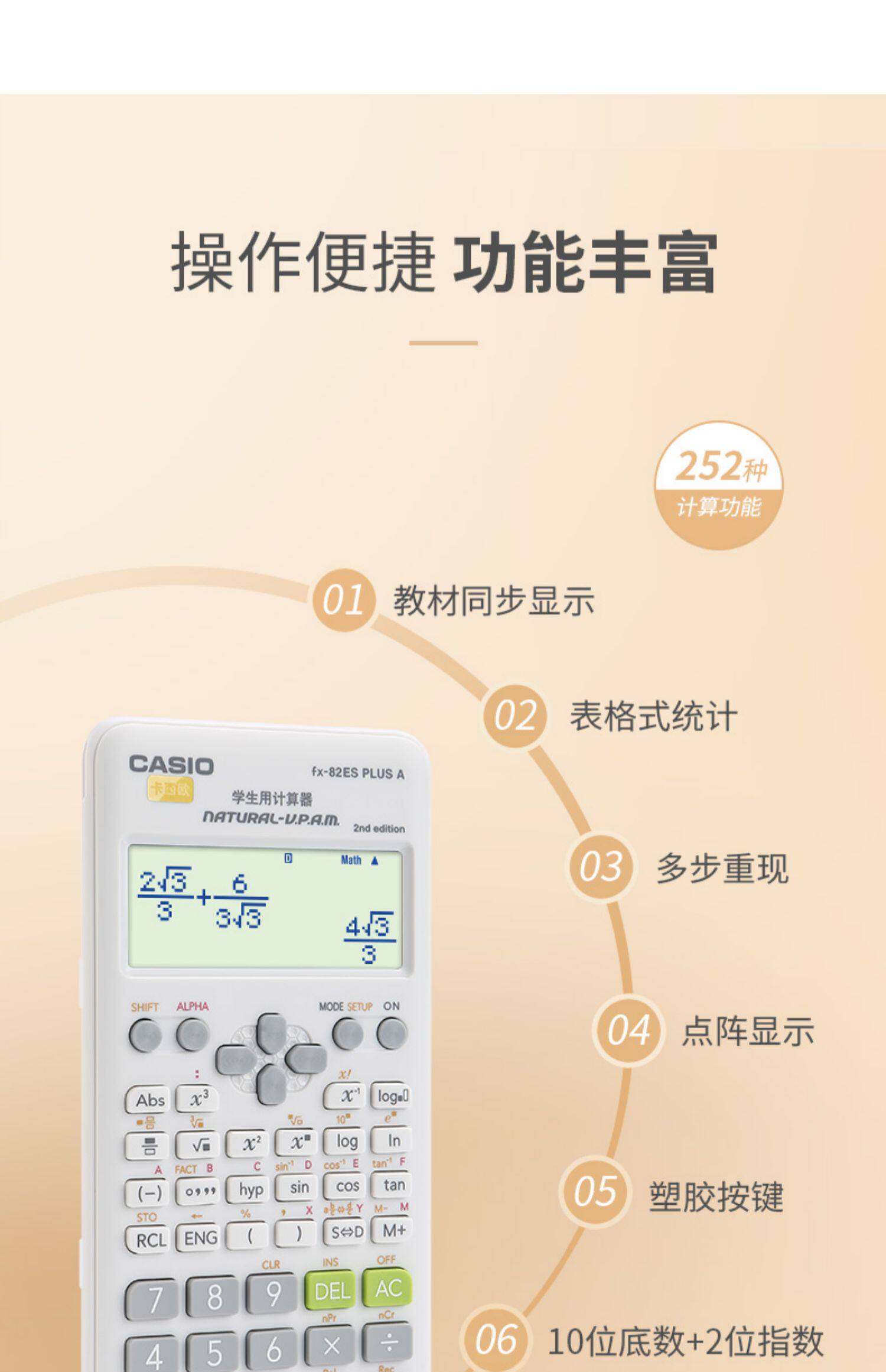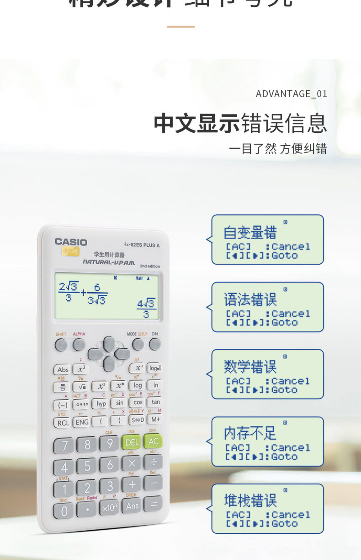 Калькулятор Casio Девятилетняя хранилище десяти цветных калькуляторных учета подлинное FX-82ES плюс научная функция