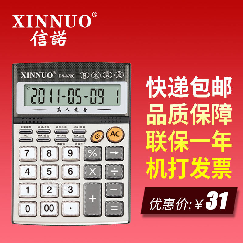 Подлинный Xinnuo DN-6720 Big Key Voice Calculator 12-значный офисный финансы большой компьютер