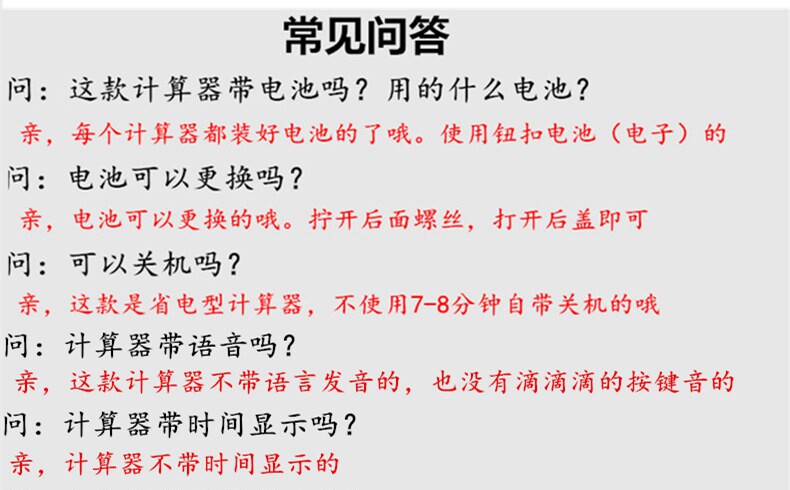 Нет бесплатной зоны доставки: Цинхай, Гансу, Тибет, Внутренняя Монголия, Синьцзян, Нинсия, вам нужно составить 4 юаня по цене, пожалуйста, не размещайте заказ, пожалуйста, не размещайте заказ. Я обращаю внимание на каждую оценку клиентов, и каждый бизнес будет работать и чувствовать это. Носить модную и щедрую, с немного свежим.Новая дорогая в этом году Реальная вещь, как показано ниже: Подарки, которые можно использовать в качестве детей: вознаграждение детей   Привет, таблица расчетов: расчет+время 8 -Дигит, плюс или, умножение, без квадратного и корневого числа, кнопка немного мала (размер рисовых зерен) тихий ![]() ![]() | |||||