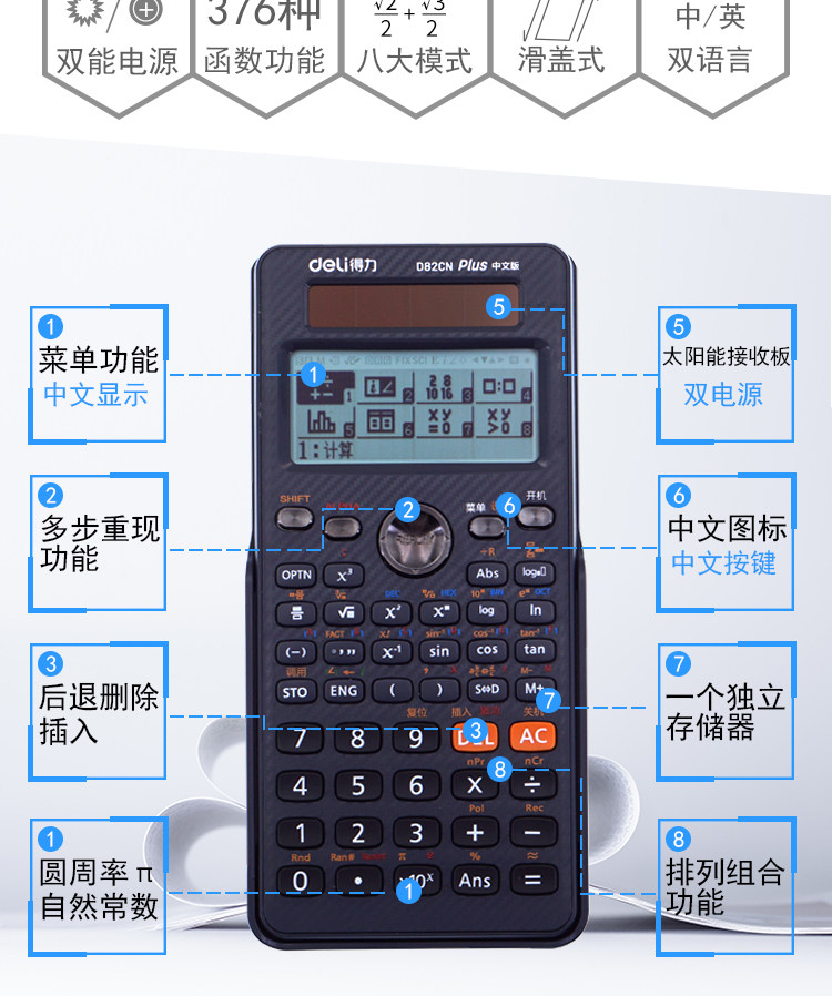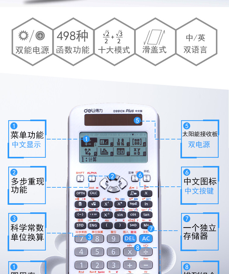 Deli Science Calculator 991cn Китайская версия для студентов экзамен на экзамен на калькулятор Солнечный университет
