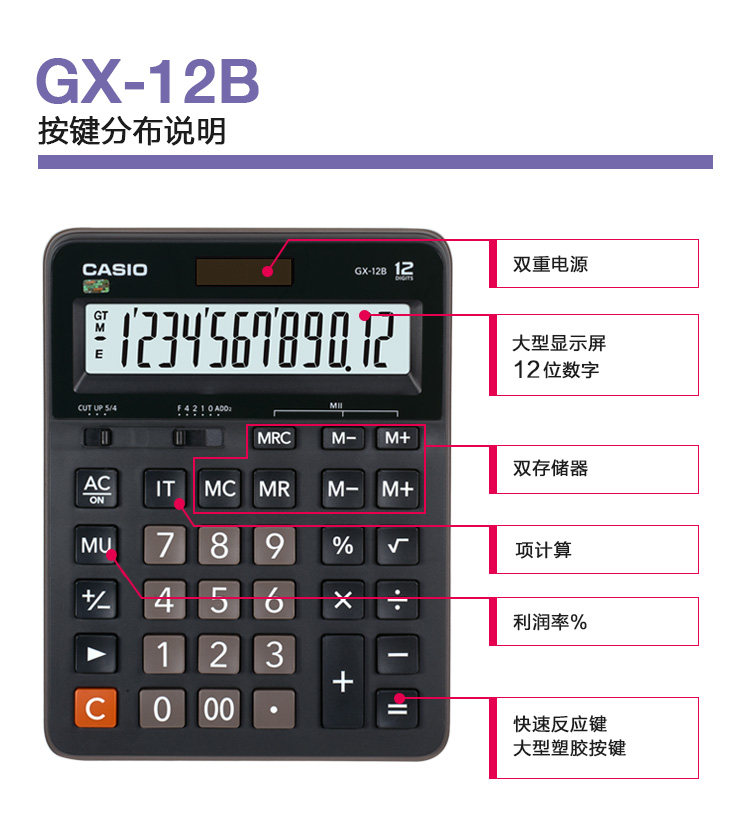 Подлинный Casio GX-12B Business Office большой кнопка компьютер