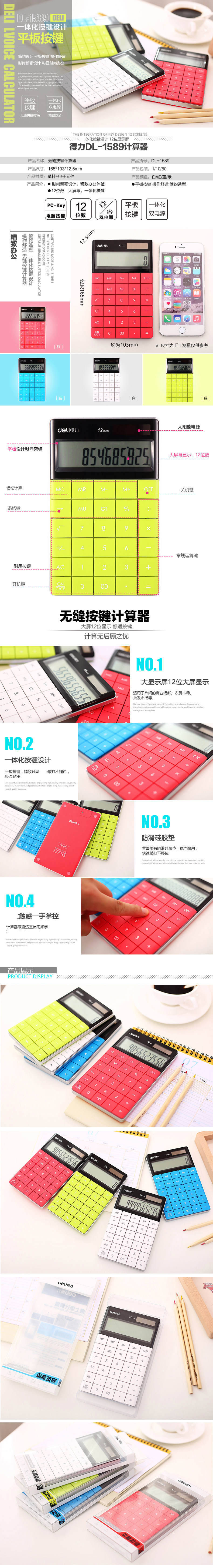 Deli 1589 Calculator Big кнопка много -функциональный офисный бизнес тип красочный портативный калькулятор Солнечная энергия