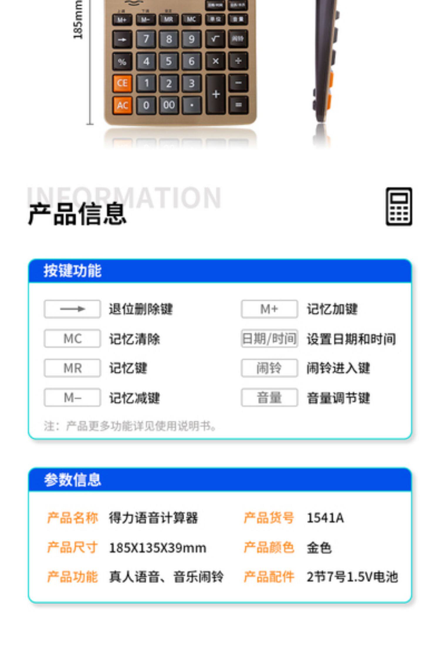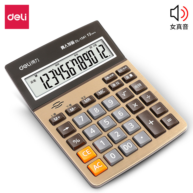 Deli 1541a локальный золотой голосовой калькулятор большой настольный фонетический компьютер