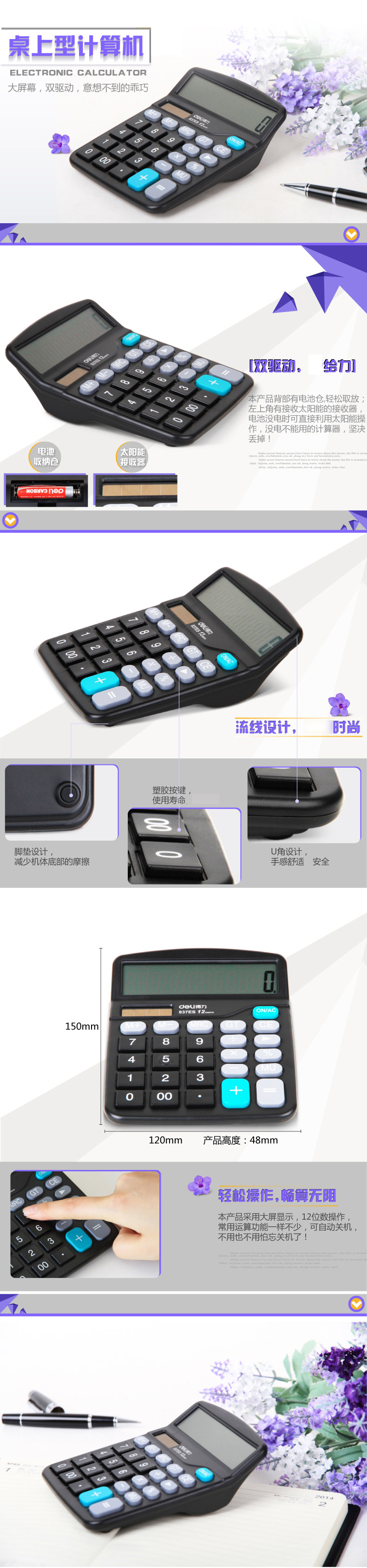 Deli 837ES Calculator Solar Computer 12 -бит.