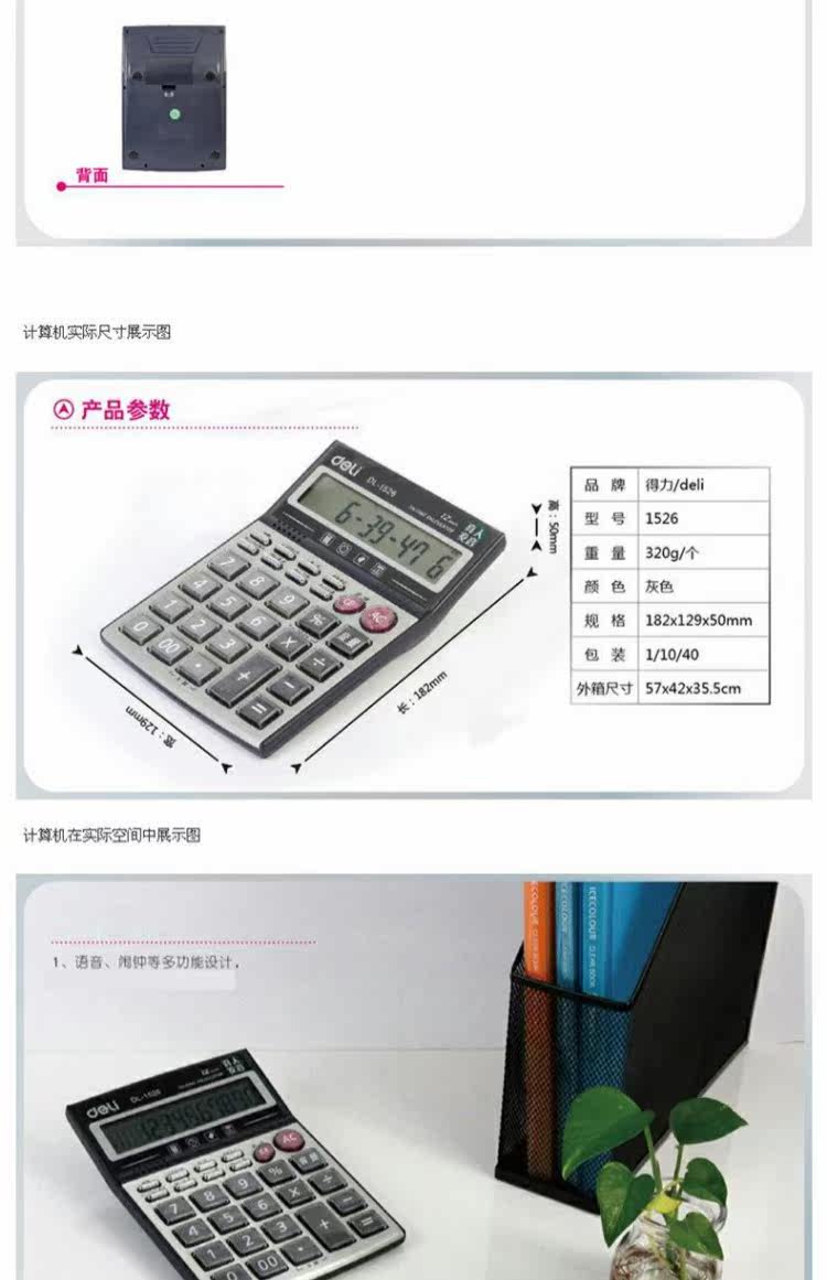 Deli Compuctor 1526 Desktop 12 -bit Voice Computer Большой кристалл экрана с музыкальной тревогой
