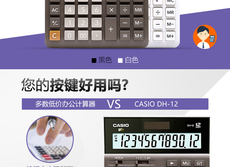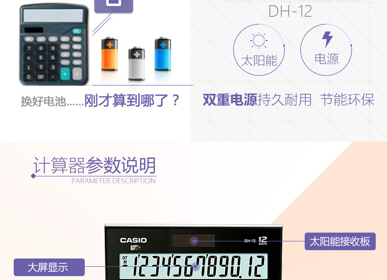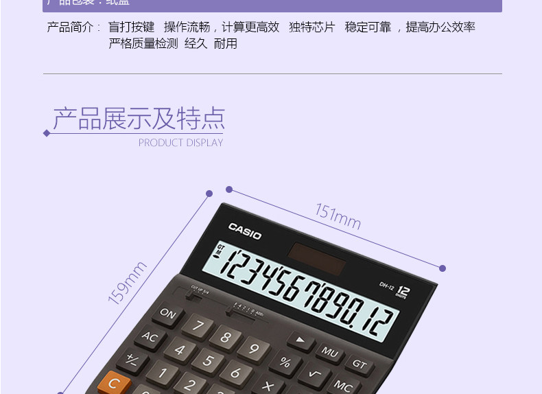 Casio Casio DH-12 Новый широкоиплентный настольный кассовый кассовый калькулятор 12-значный солнечный офис электронной коммерции офис