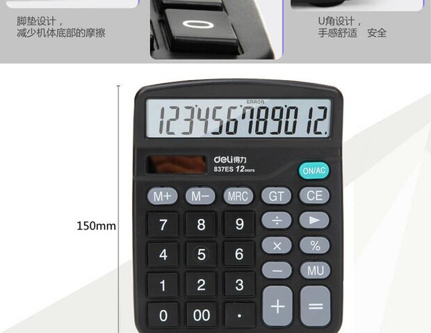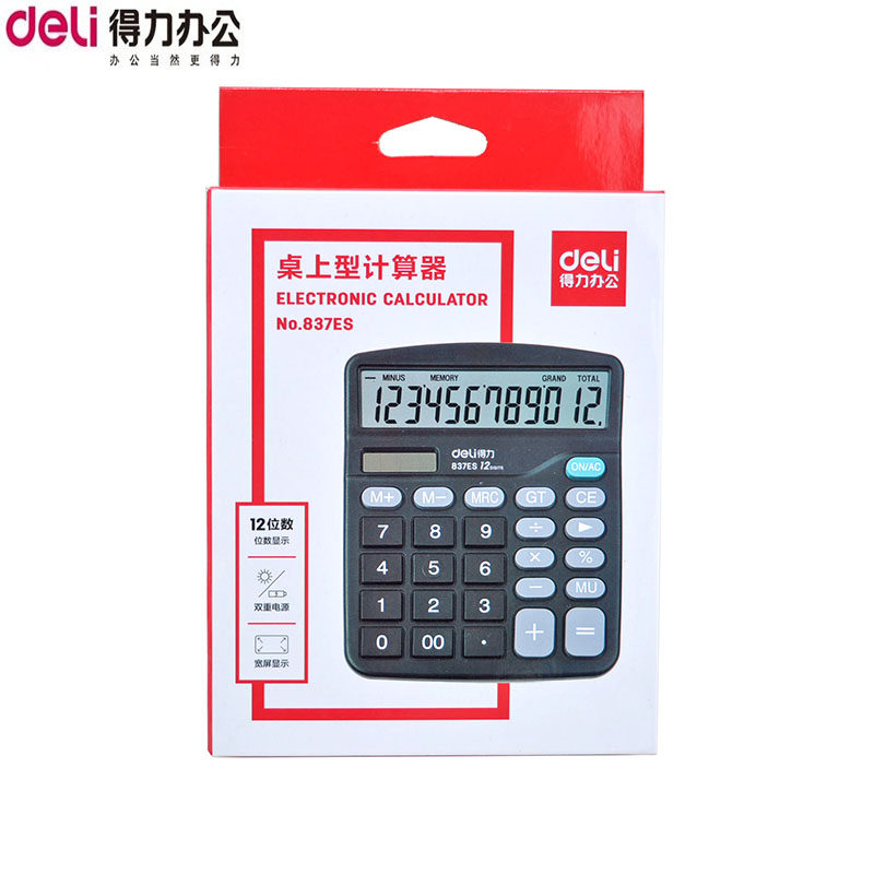 Deli 837es Двойной калькулятор настольный компьютерный офис Финансовые принадлежности 12 цифр