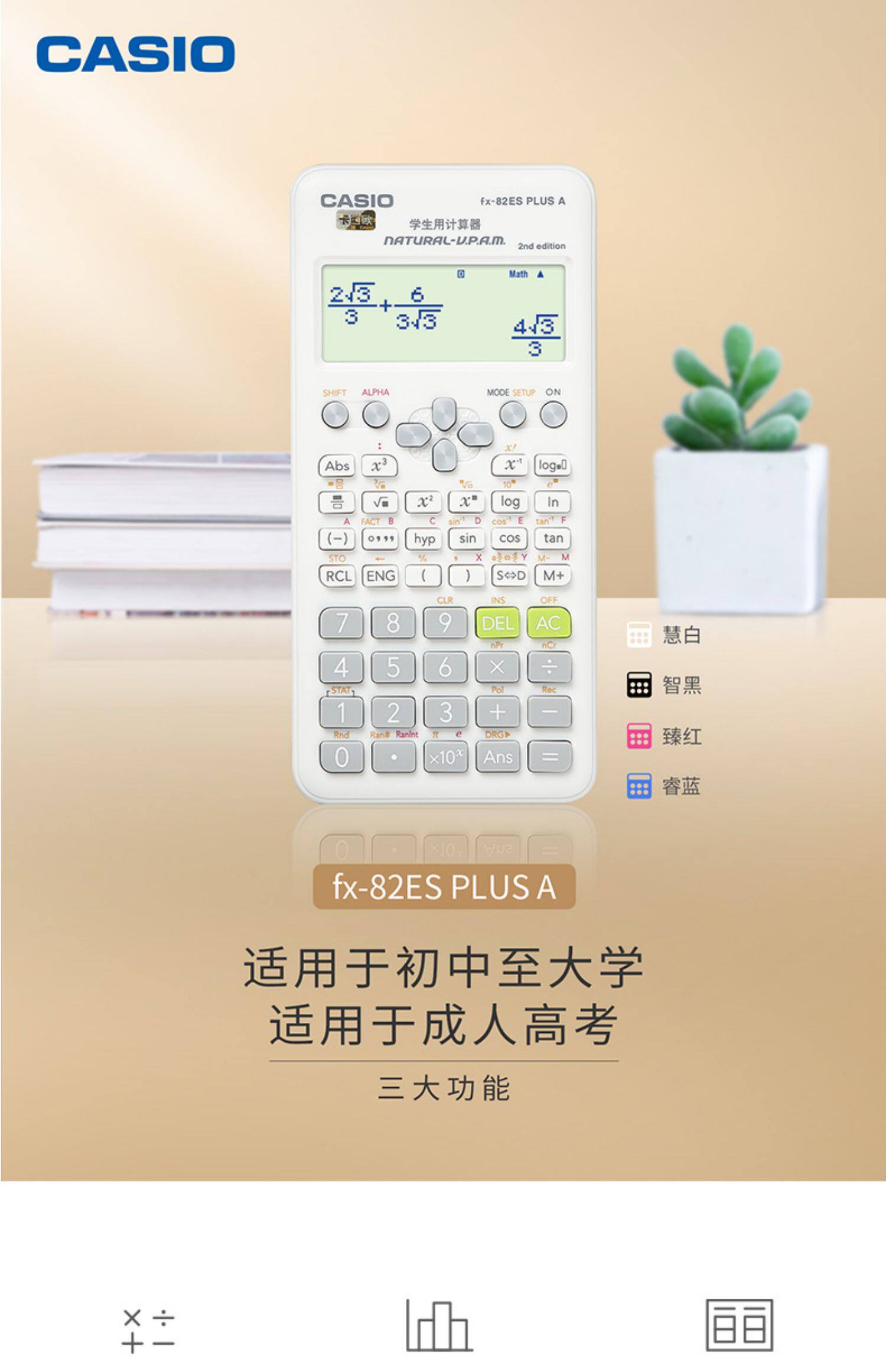 Калькулятор Casio Sevenying Store Four Color Prowntors FX-82ES плюс функция студенческой науки
