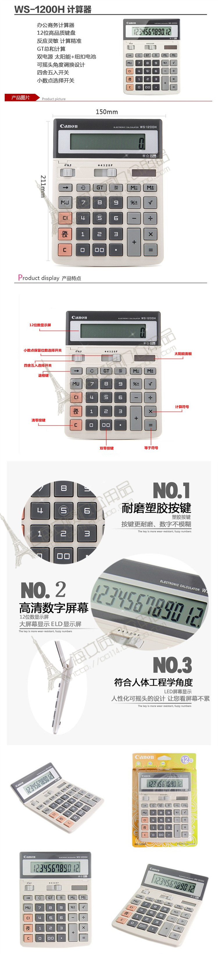 Canon Canon WS-1200H Большой калькулятор Регулируемый бизнес финансового офиса компьютер