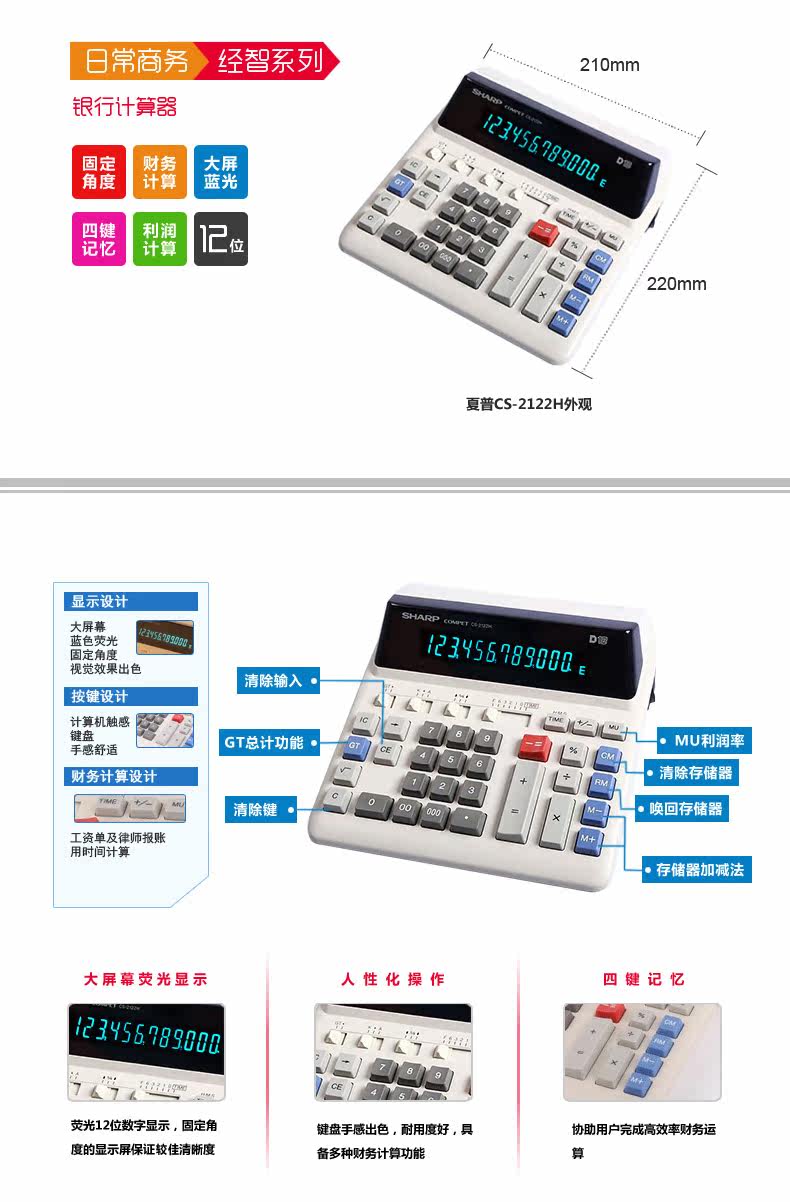 Sharp CS-2122H подключаемый плагин-модуль светодиодный флуоресцентный экран калькулятор калькулятор банк финансовый применимый калькулятор