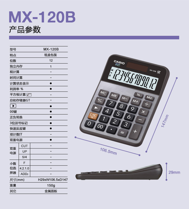 Оригинальный Casio/Casio MX-120B, модный и простой калькулятор, офисный компьютер, 12 цифр