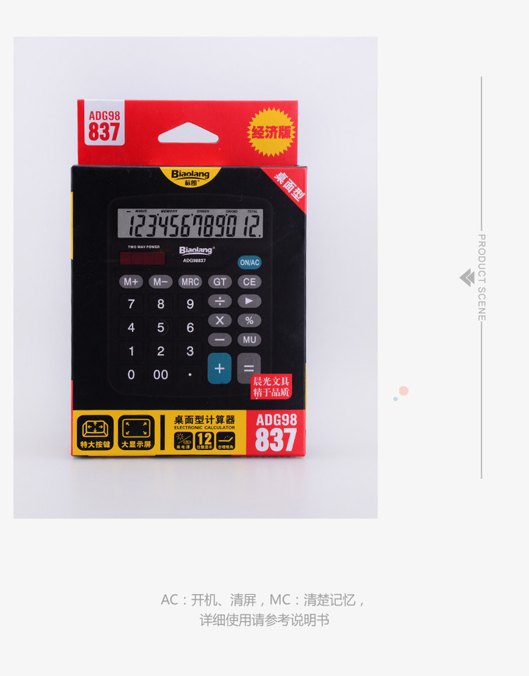 Chenguang 837 Calculator Solar Dual Power 12 -Digit Financial Office Специальный компьютер ADG98837