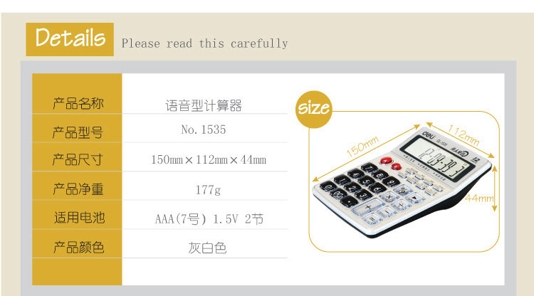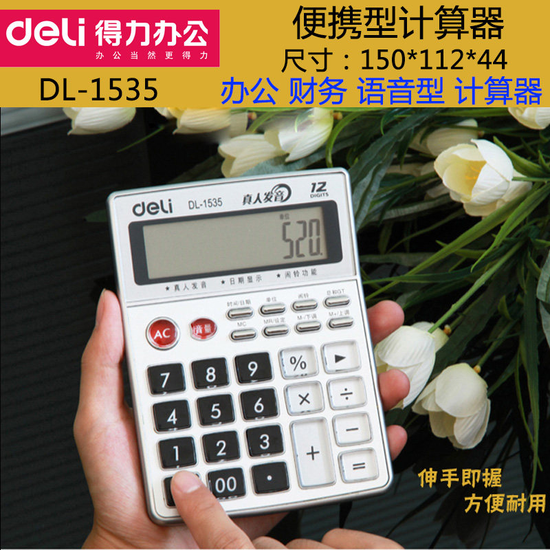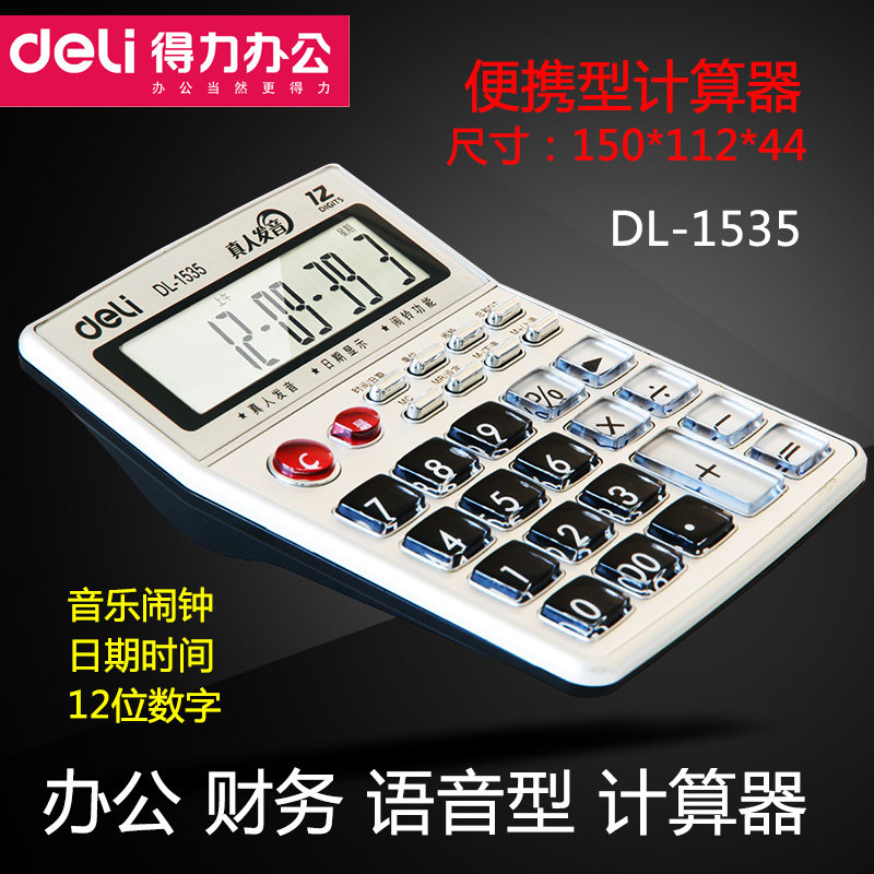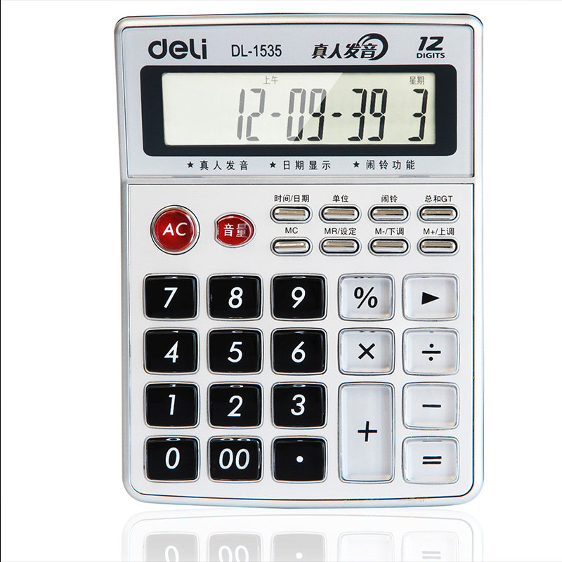 Deli 1535 Financial Office Voice Multifunctional Calculator 12 -bit Business Computer Кнопка отображения