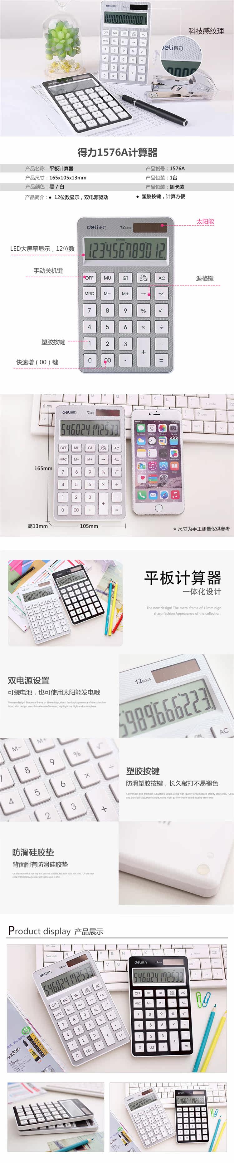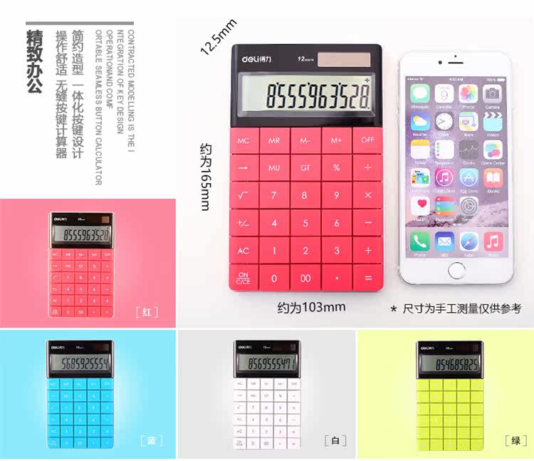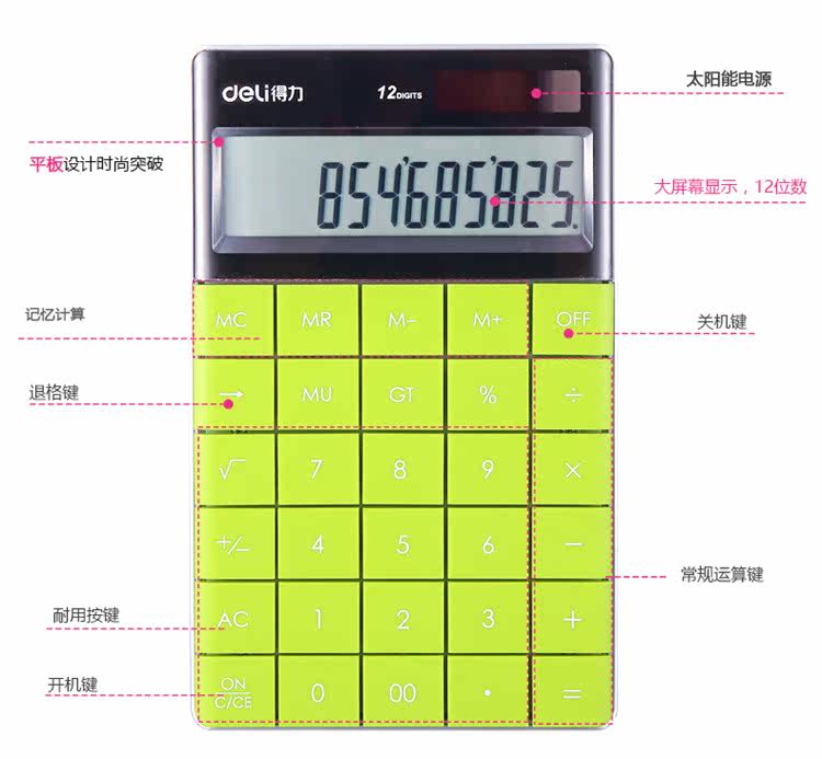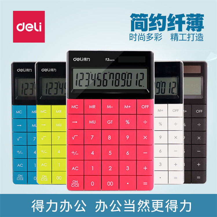 Deli 1589 Симпатичная корейская конфетка -Королевая студенческая офисная технология сенсорная текстура текстура текстура, солнечный табличный калькулятор 12 цифр