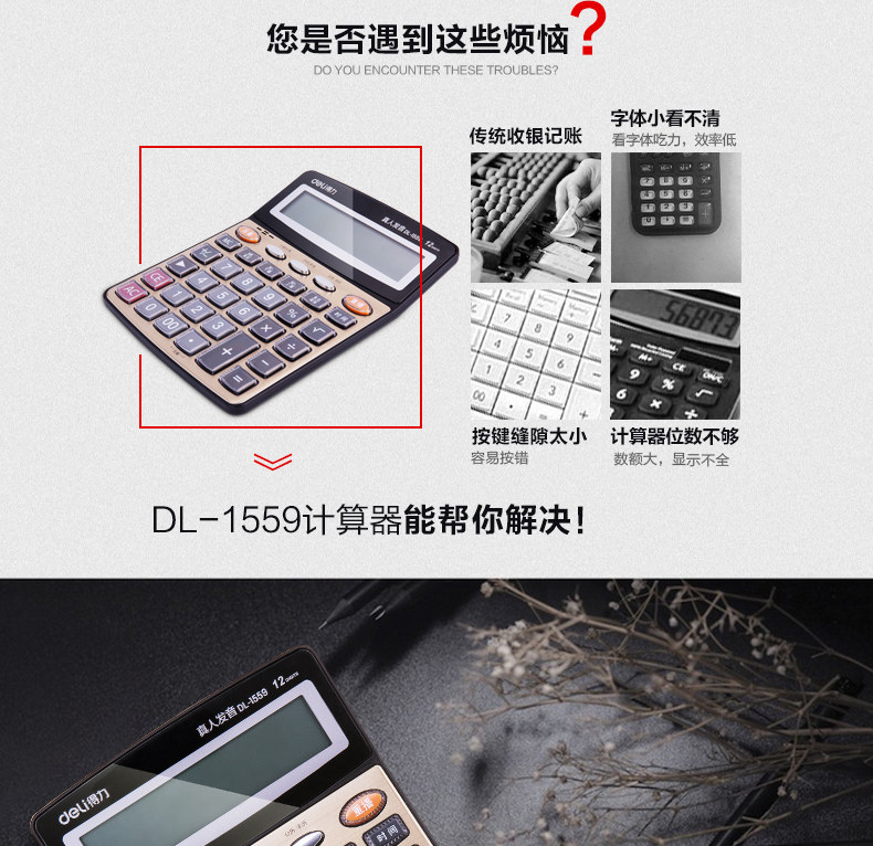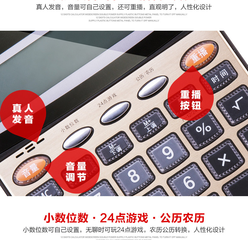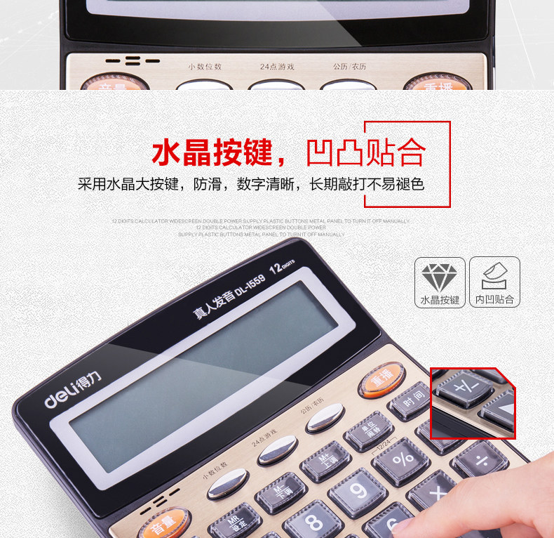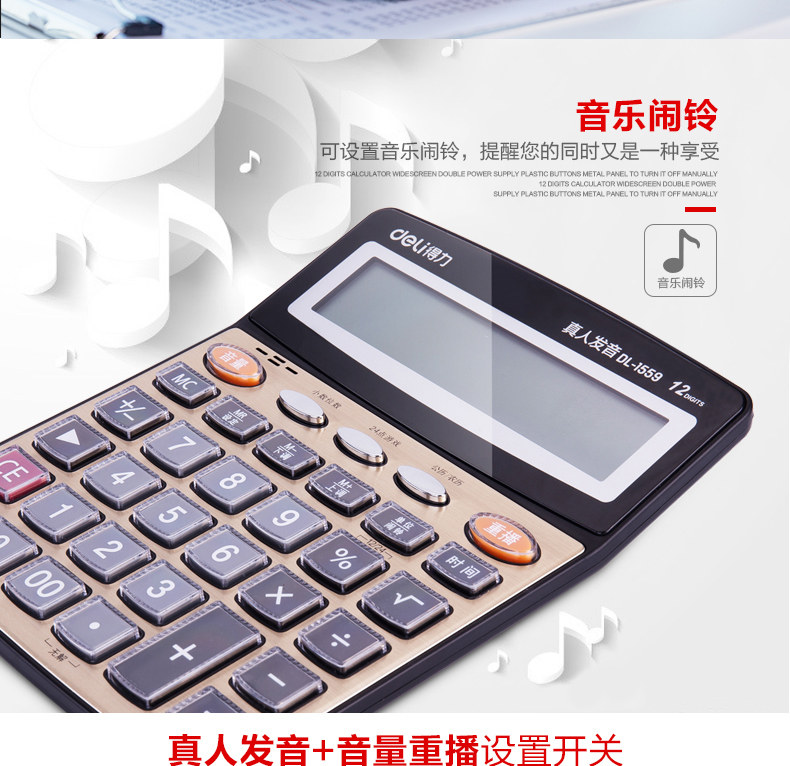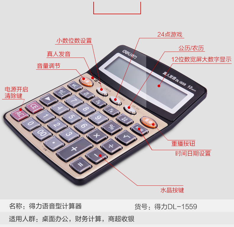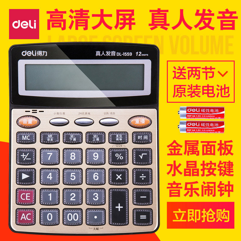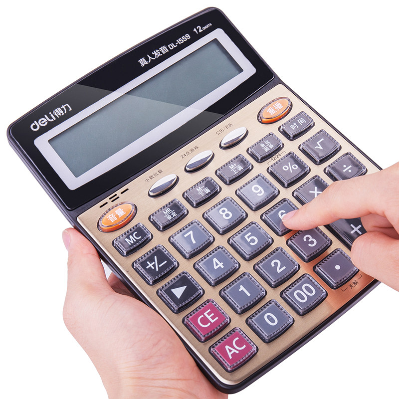 Deli Deli 1559n Большой голосовой калькулятор прозрачный большие клавиши большой экран