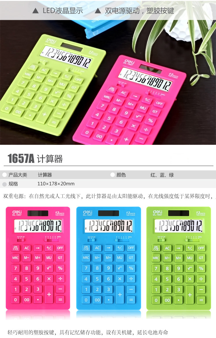Deli Student Calculator Fashion Business Combusion Computer Cute Solar Finance Special Portable Calculator