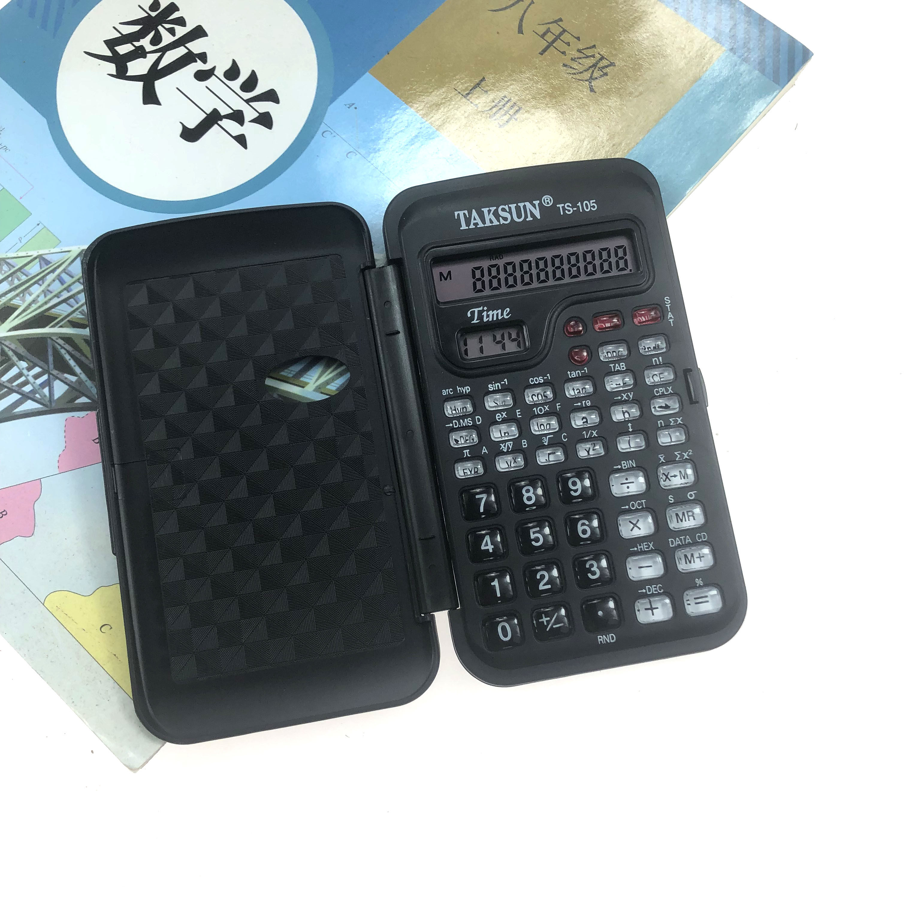 Dexin TS-105 чернокожие функции калькулятора Наука Первоначальный и средняя школа Учебные поставки Flip Small Portable Mecket