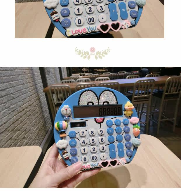 Cartoon Blue Fat Big Keys Computer Cute City Rhils Большой экран Солнечный калькулятор подарок Ding Ding Cat