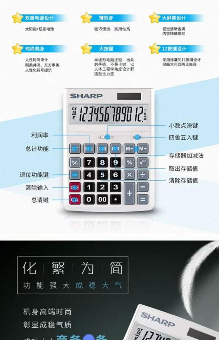 Sharp Sharp Business Office Calculator Большая кнопка солнечная большой экран. Финансовый компьютер CH-G12
