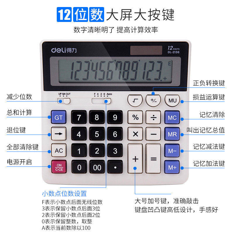 Deli 2136 Совет Совета по калькулятору солнечной энергии для Совета по производству торговли финансами Казначейства 12 Многофункциональные TIMS Студент Студент Двойной энергопотребление Большой большой солнечный компьютер Бесплатная доставка