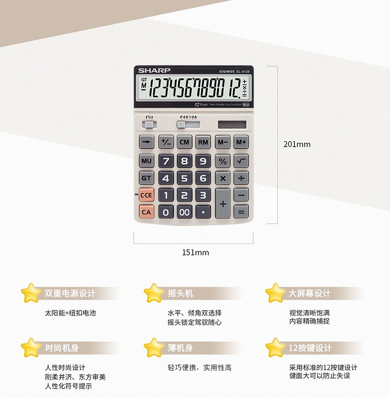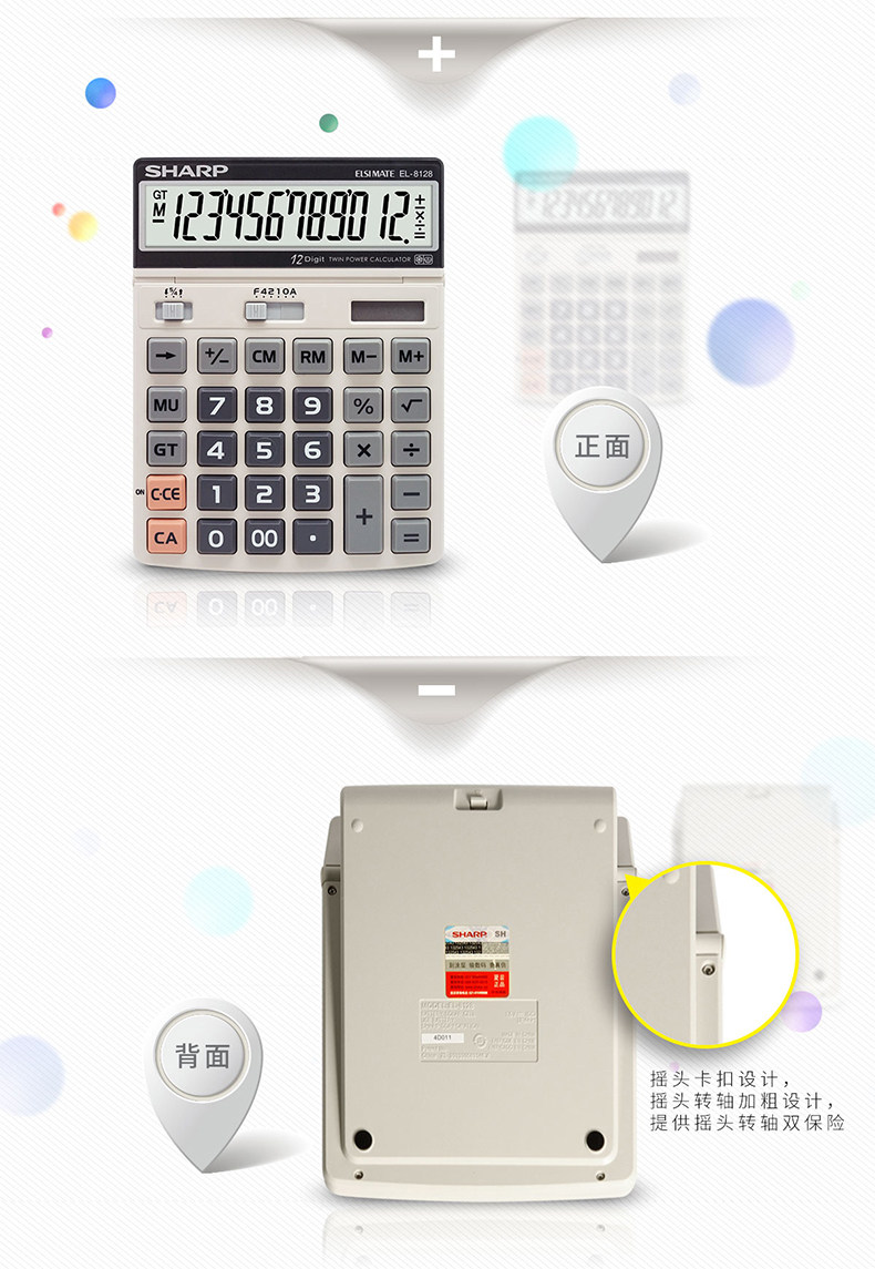 Sharp Calculators Большая кнопка солнечной финансы офис компьютер El-8128 может перевернуть