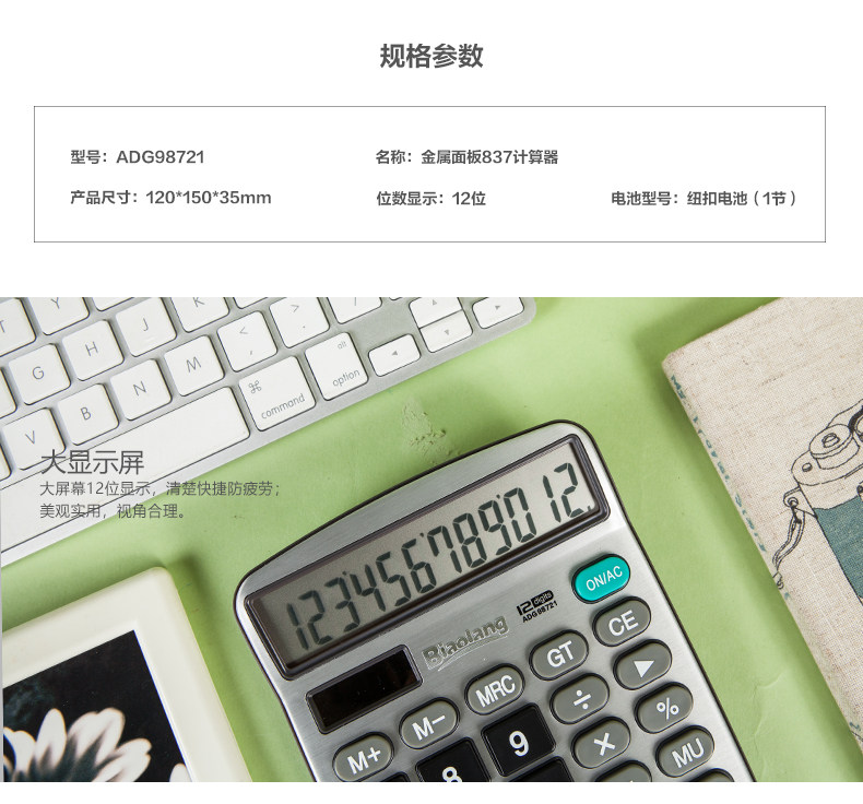 Калькулятор канцелярских товаров Chenguang 837 Студенческий финансовый учет Выделенная большая экрана Солнечная двойная мощность ставка на компьютер Металлическая панель 837 (98721) Бизнес -обучение