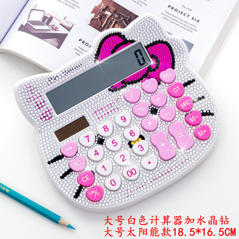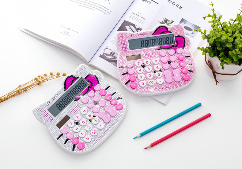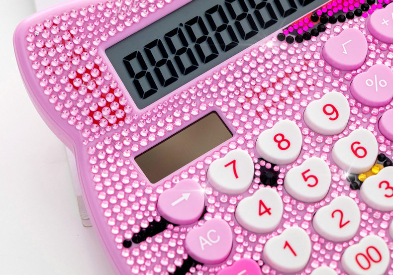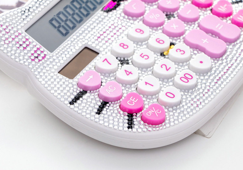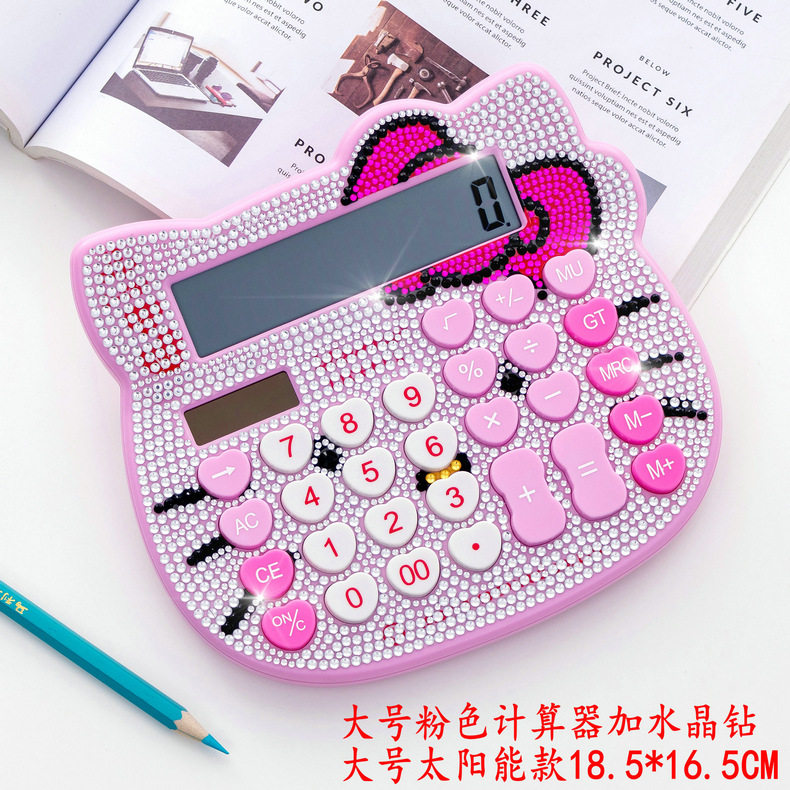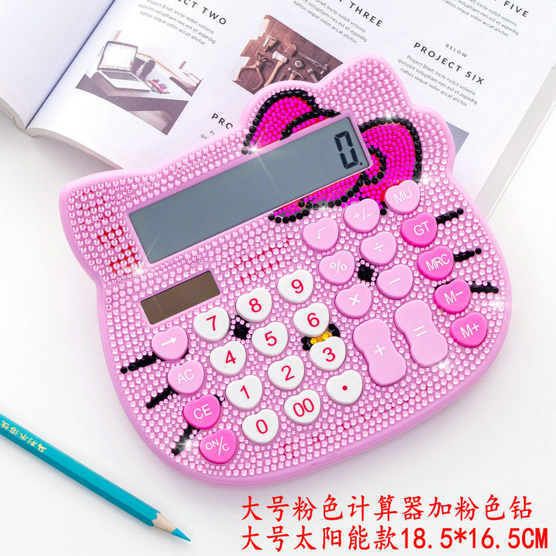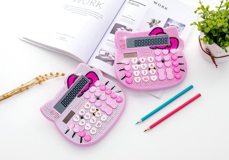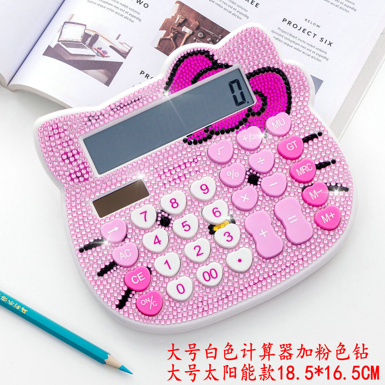 Кошачья голова хрустальный страза Боут розовый милый мультипликационный алмазный калькулятор инкрустанный солнечный мультипликационный компьютер