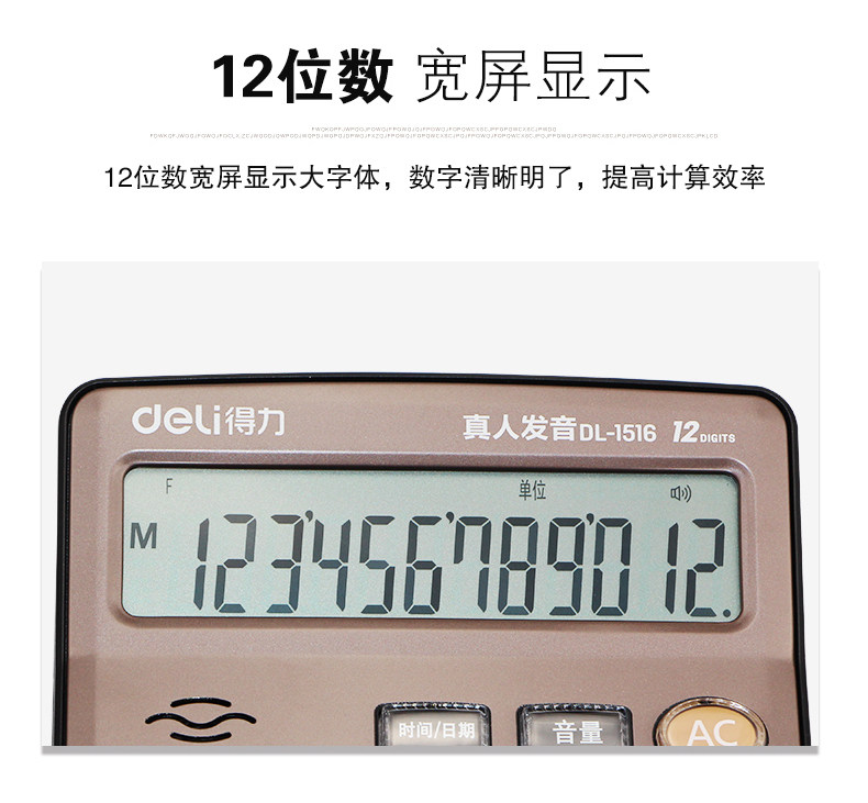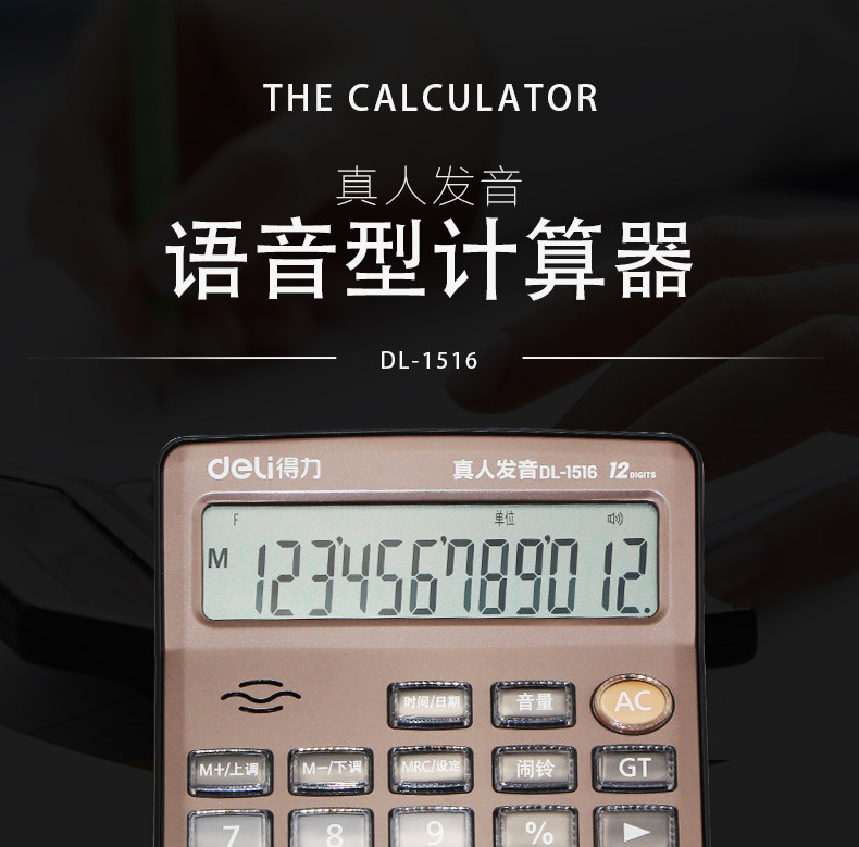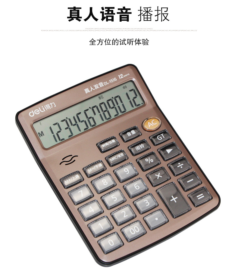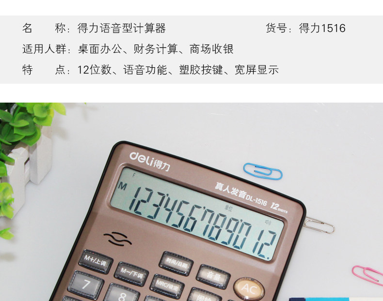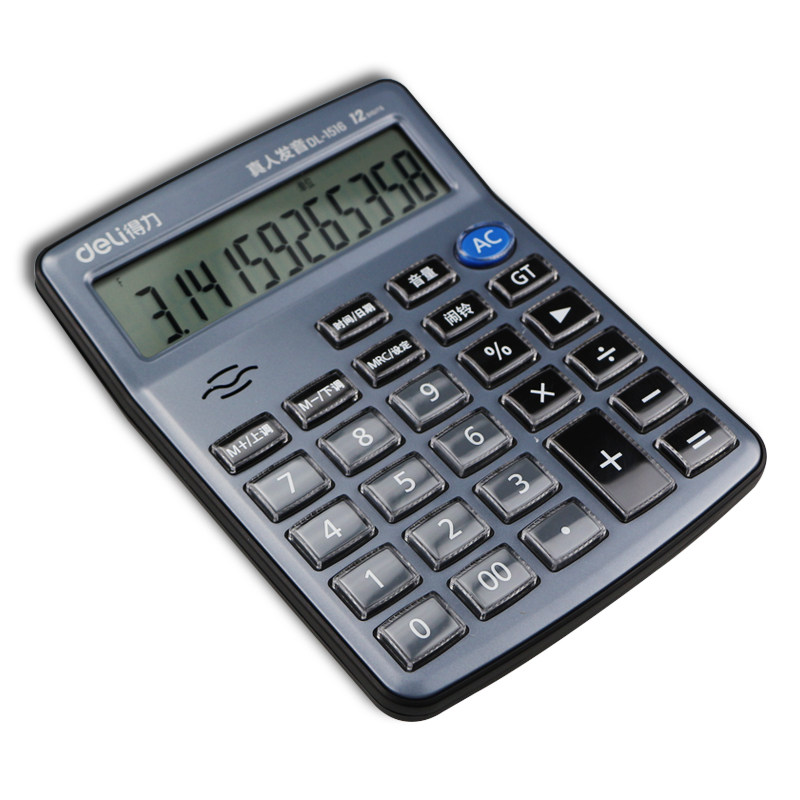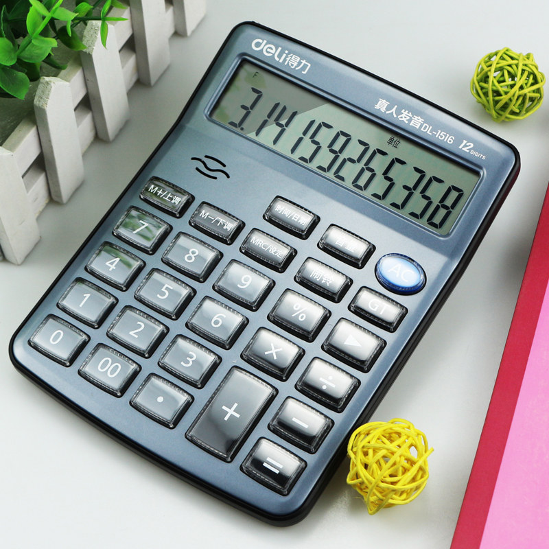 Deli 1516 Live Voice Calculator 12 -бит большой офис Crystal большая кнопка большие экраны Финансы компьютера