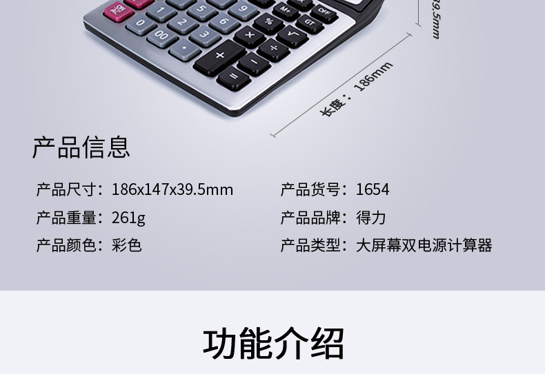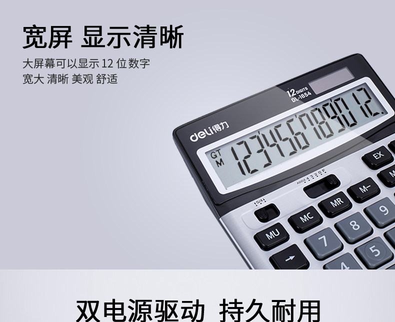 Deli Lito Calculator Финансовый учет Солнечный двойной источник электроэнергии 1654 Офисный бизнес Большой ключевой офис бизнес -калькулятор многофункциональный компьютер