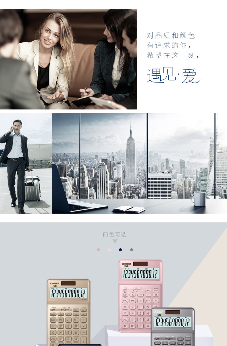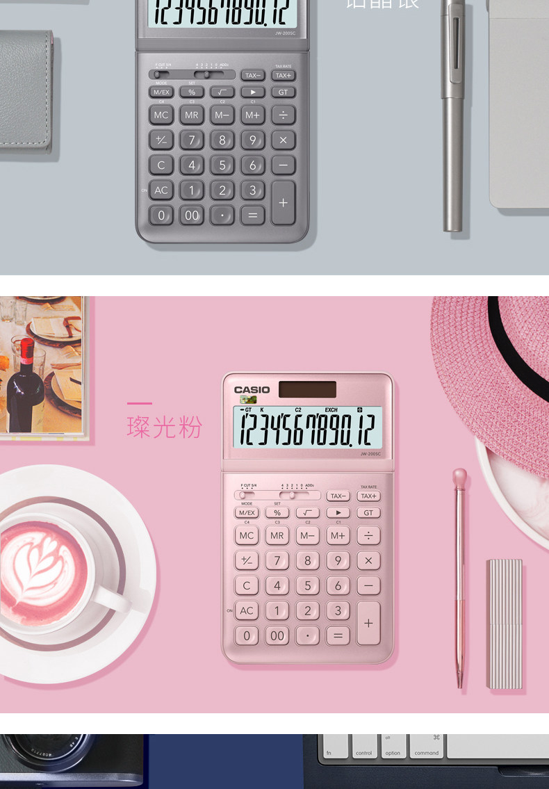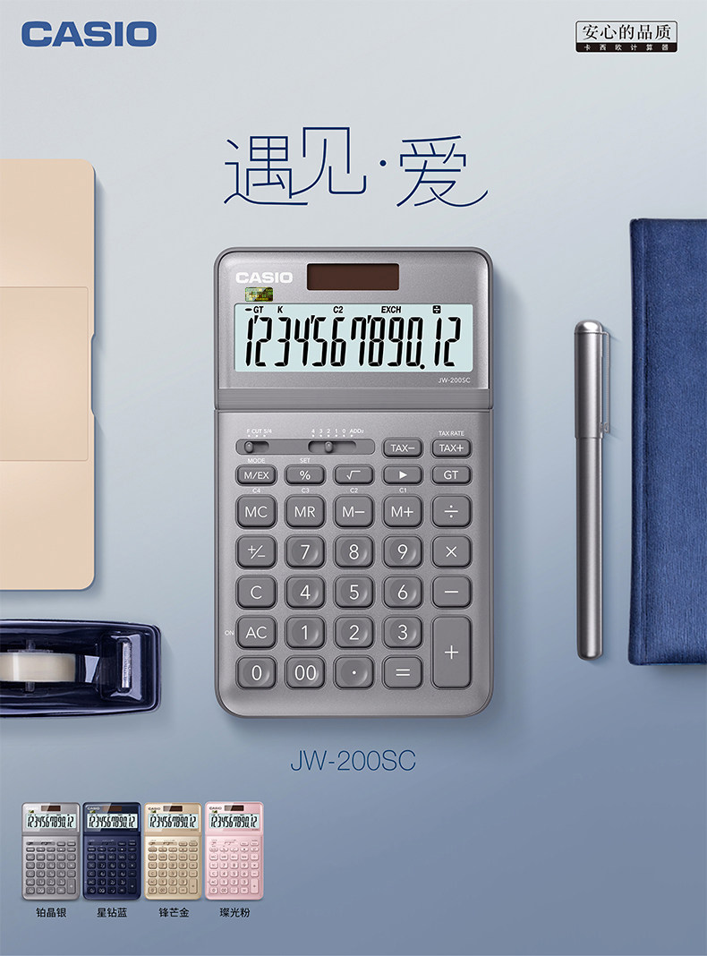 Casio JW-200SC Fashion White-Collar Business-Type Business Calculator 12 широкоэкранный дисплей Солнечный двойной электричество розовый цвет опциональные компьютеры тонкие