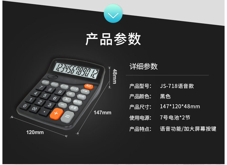 - 【JS-718 Черный калькулятор】