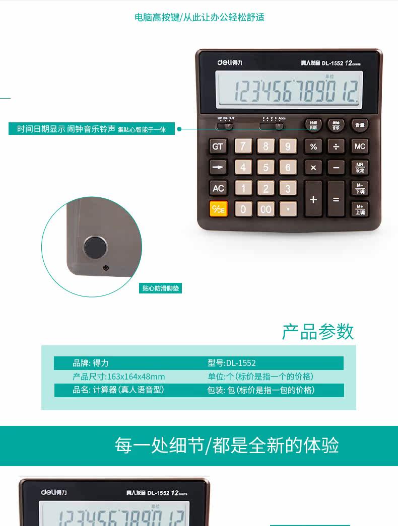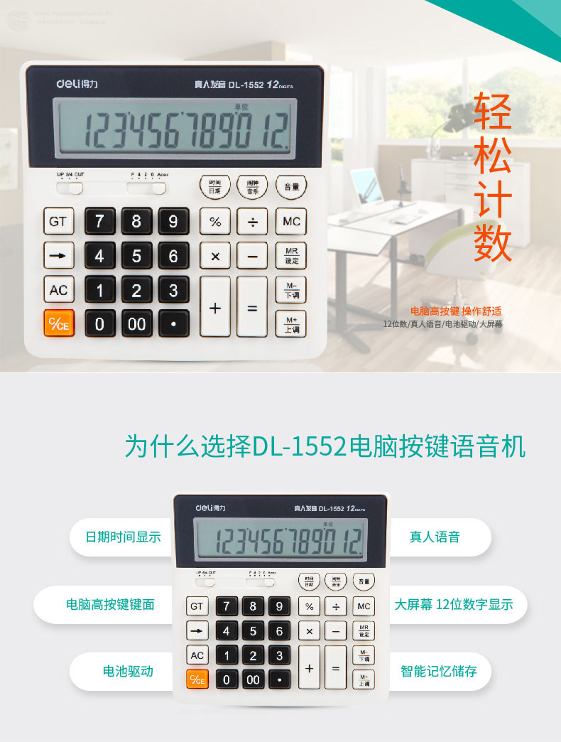 Deli 1552 Voice Computer Computer 12 -bt Computer Key Financial Bank использует большие кнопки больших калькуляторов с большим экраном калькуляторы офис