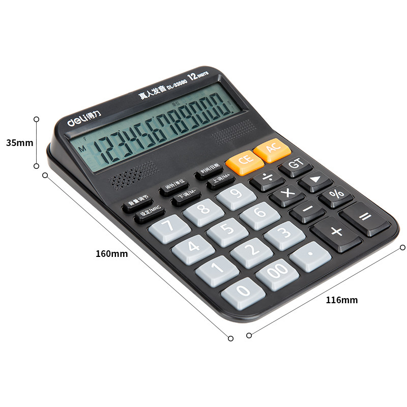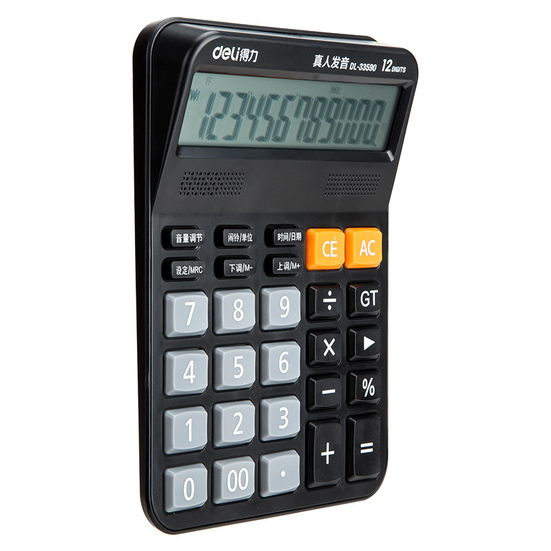Deli 33590 Голосовой калькулятор домохозяйства поставляет большие экраны большие клавиши 12 -бит компьютерной реальной произношения бесплатной доставки