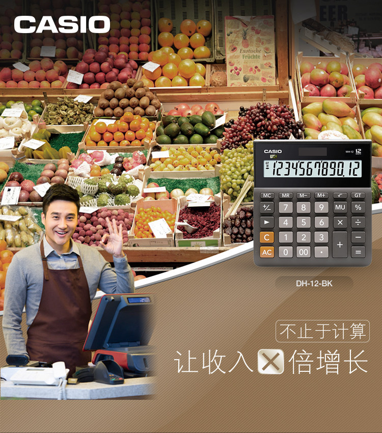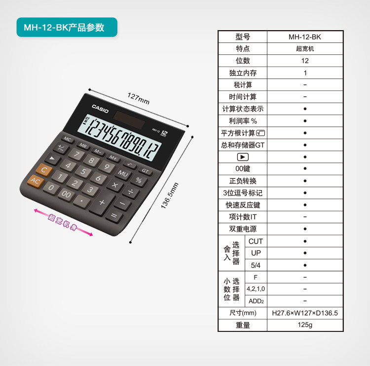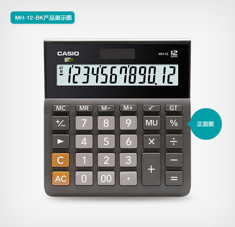 Casio Calculator MH-12-BK Ультра-ширина офисного офисного бизнеса Солнечные финансы Студент Студент Большой портативный компьютерный напольный киоски свинг-ночной рынок небольшой компьютер