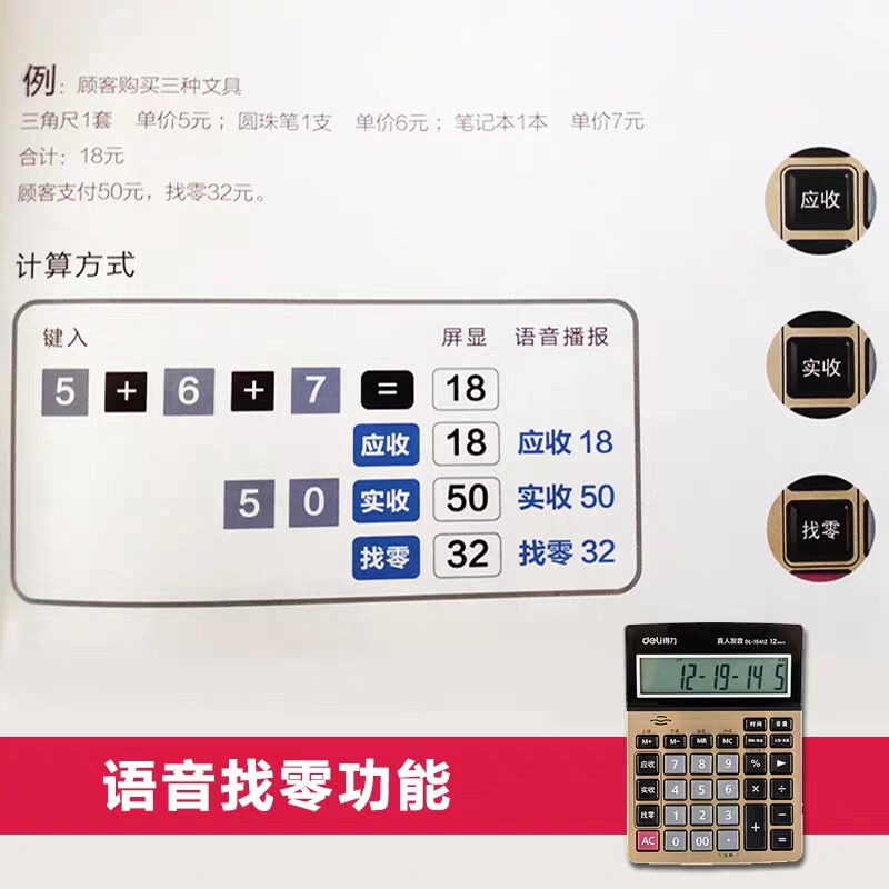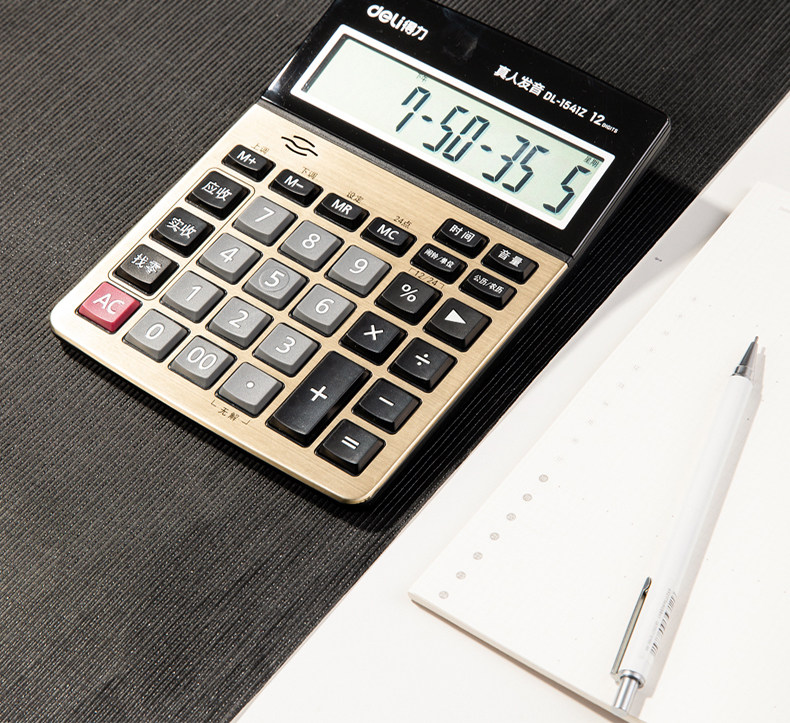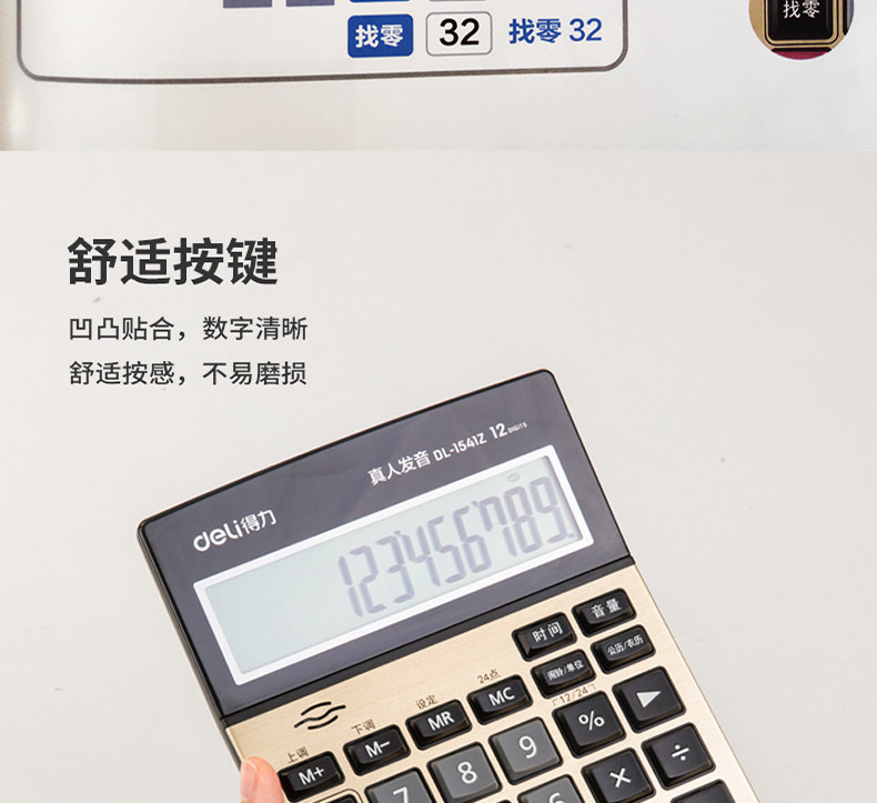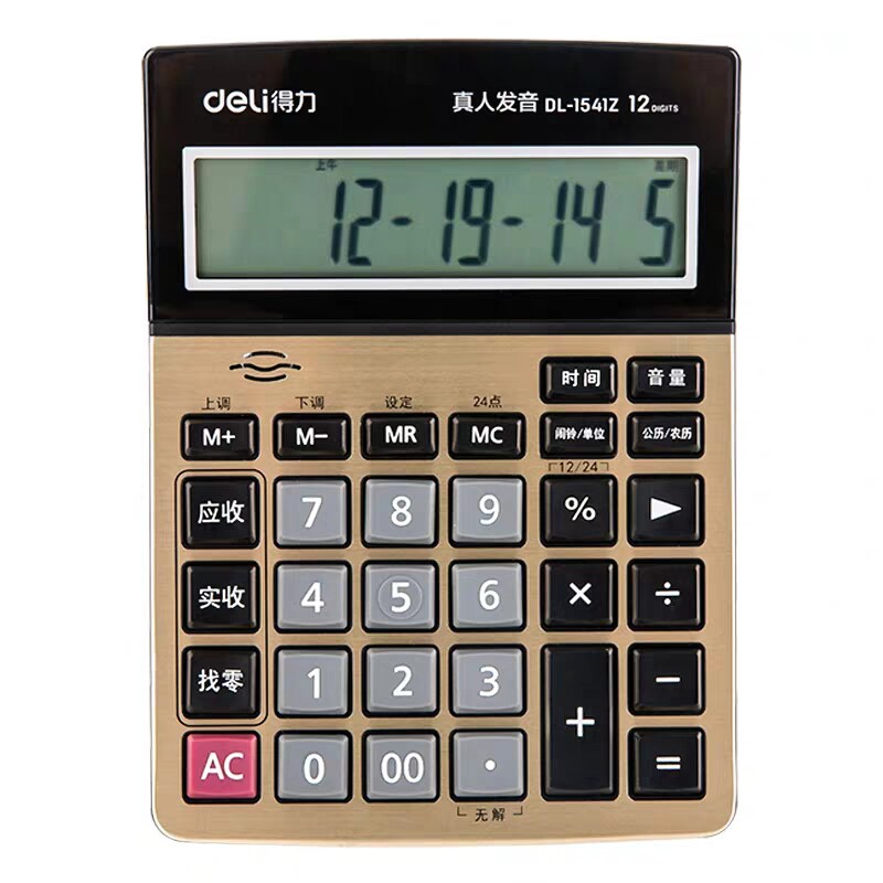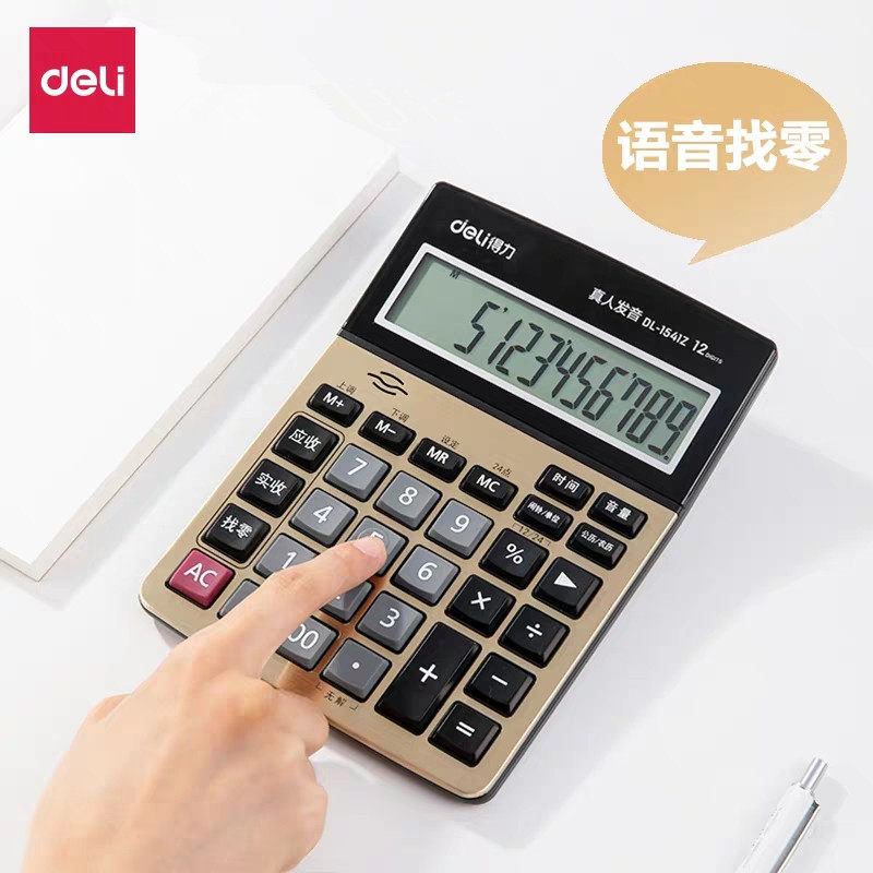 Deli 1541Z Нахождение калькулятора продуктора большая кнопка Большой -экрановый бизнес финансовый кассир с учетом 12 -дигитного калькулятора металлической панели произношения с реальной жизнью