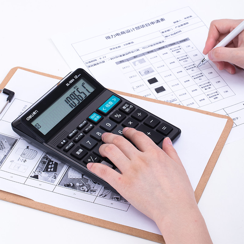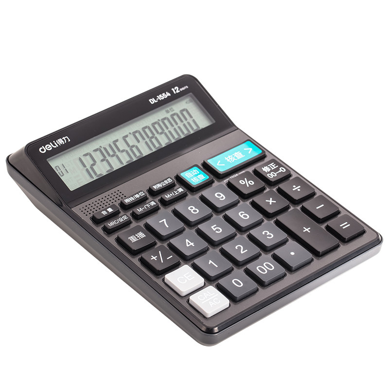 Deli 1554 Calculator большой дисплей 12 -бит -калькулятор голосовой энергии