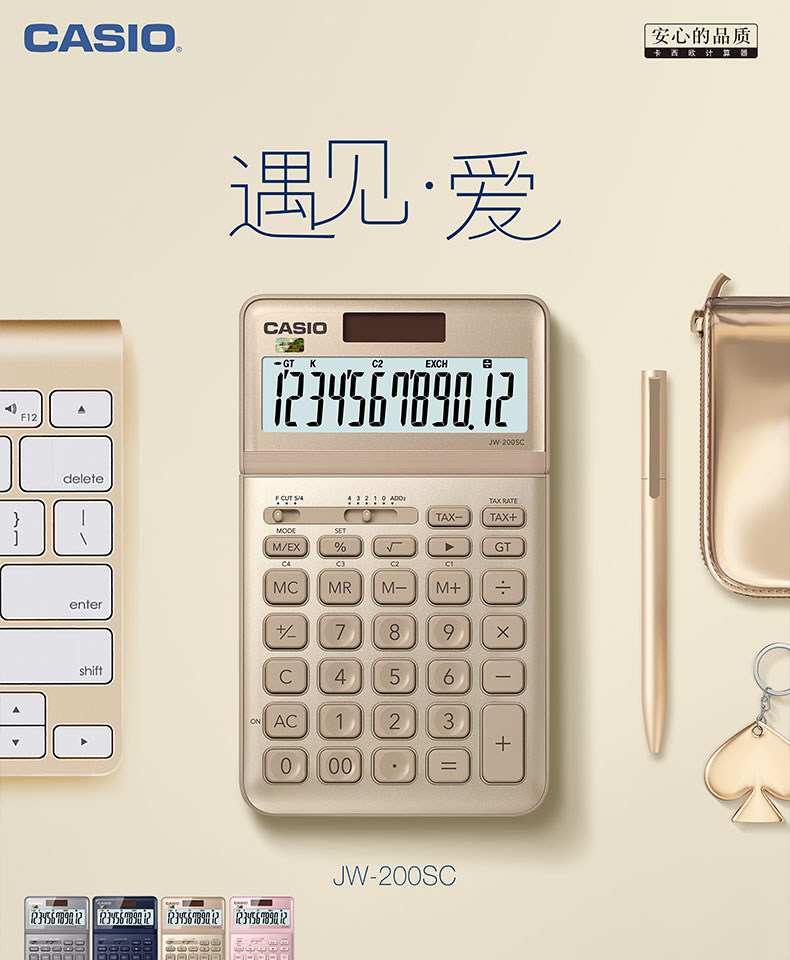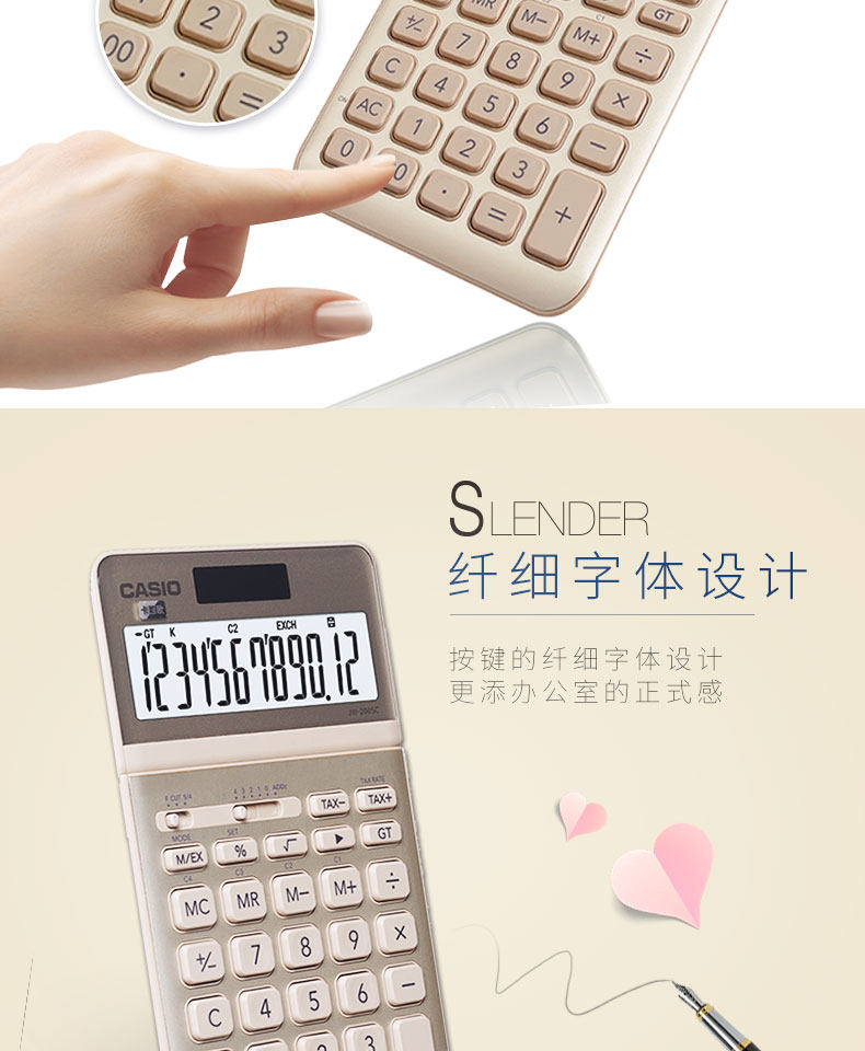 Casio Casio JW-200SC Калькулятор японской девушки ежедневно бизнес-офис продукты Студенческие университет Студент Студент Мода и прекрасный подарок Ультратонкий компьютерный бизнес-бизнес