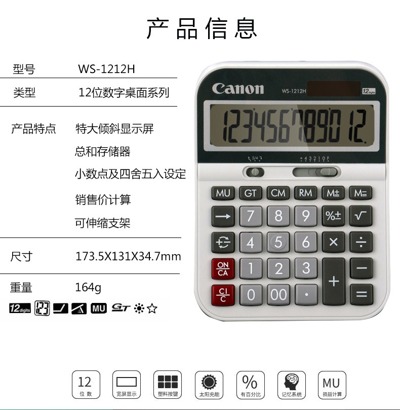 Canon (Canon) WS-1212H Калькулятор бизнес Бизнес-офис бухгалтерский учет Финансовый управление средним номером компьютер
