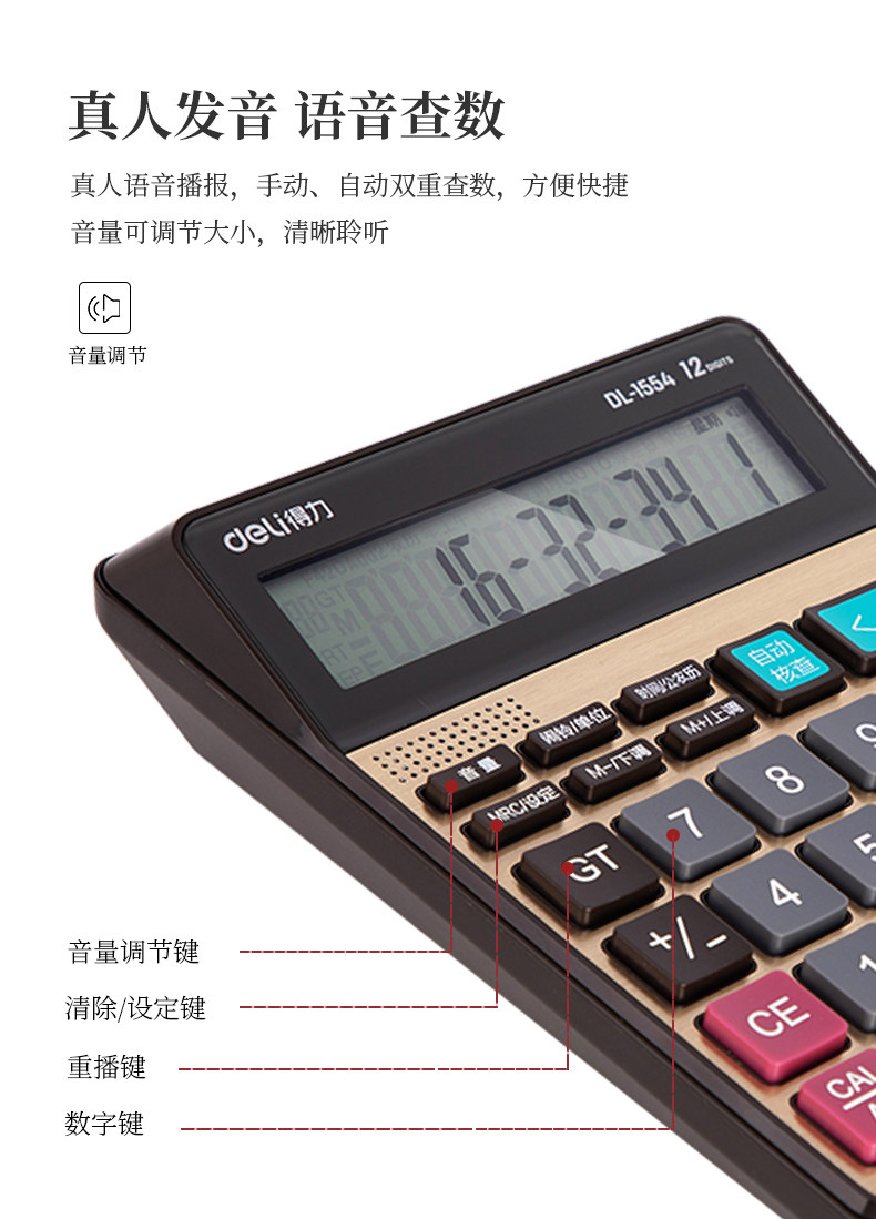 Deli 1554 Голосовой калькулятор офис финансировать специальное компьютер 12 -бит автоматическая проверка реального произношения реального человека 2 Цвет ОДИН БЕСПЛАТНАЯ ДОСТАВКА