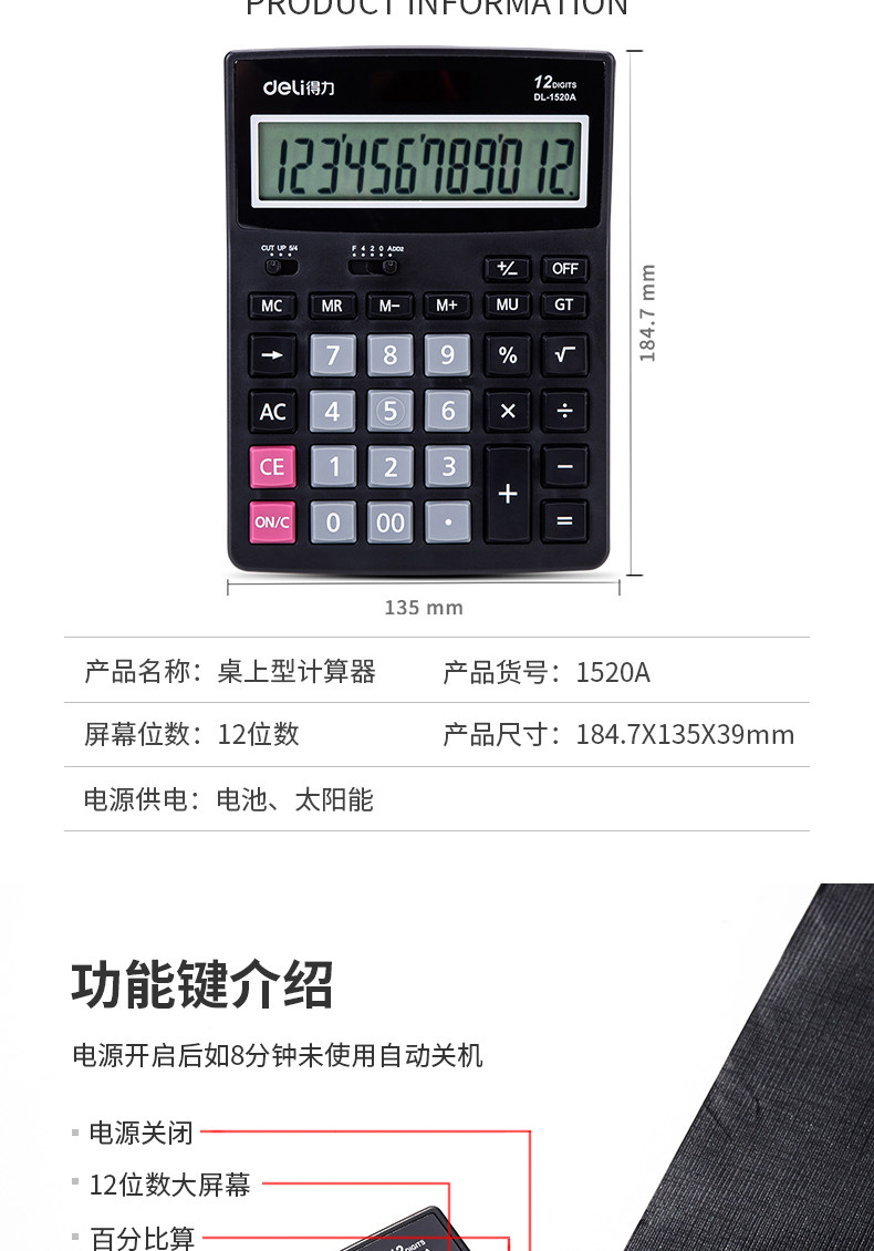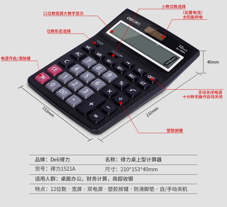 Deli 1520A финансовый калькулятор калькуляторной калькулятор.