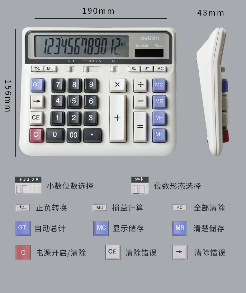 Deli Computer Button Desktop Calculator Выделен большой дисплей Солнечный двойной банк Использовать много -функциональный офис Бизнес Тип 12 -BT Computer Shop Compoport Compustor
