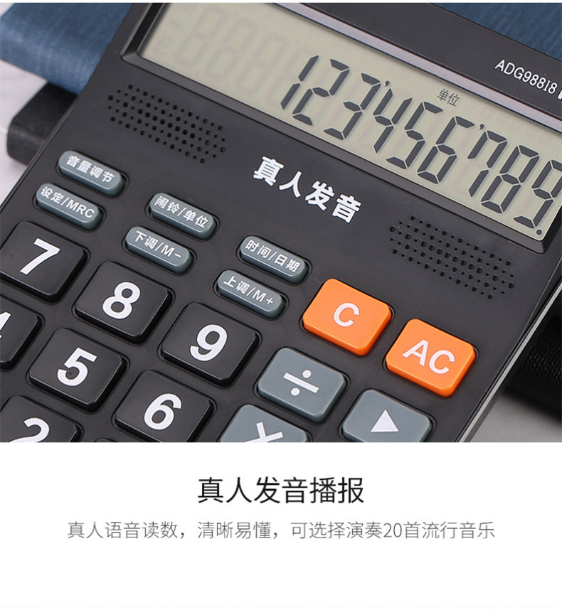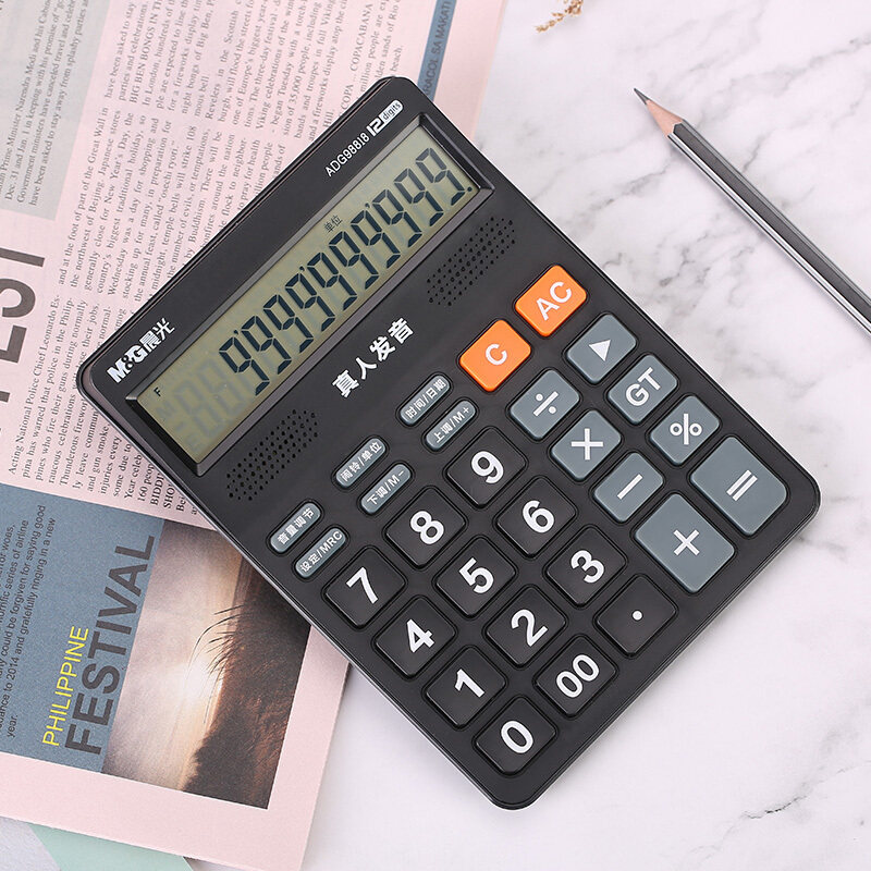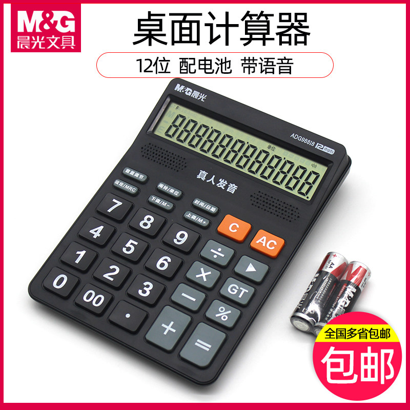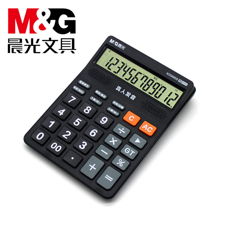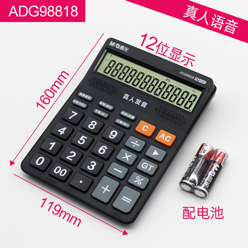 M & G/Chenguang ADG98818 Голосовой калькулятор офисной канцелярский кальцлер черный голосовой калькулятор 818 Номер зарядки Настольный студент -студент/офис Universal 12 Большой экран калькулятор