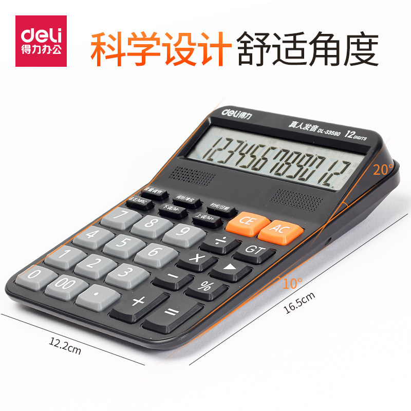 Deli 33590 Business Voice Calculator Reality Plastic Plastic Plastic of Plastic Кнопка 12 -бит шириной -экрановый дисплей музыкальный тусклый голосовой офис Общедоступный финансовый учет специальный мульти -функция